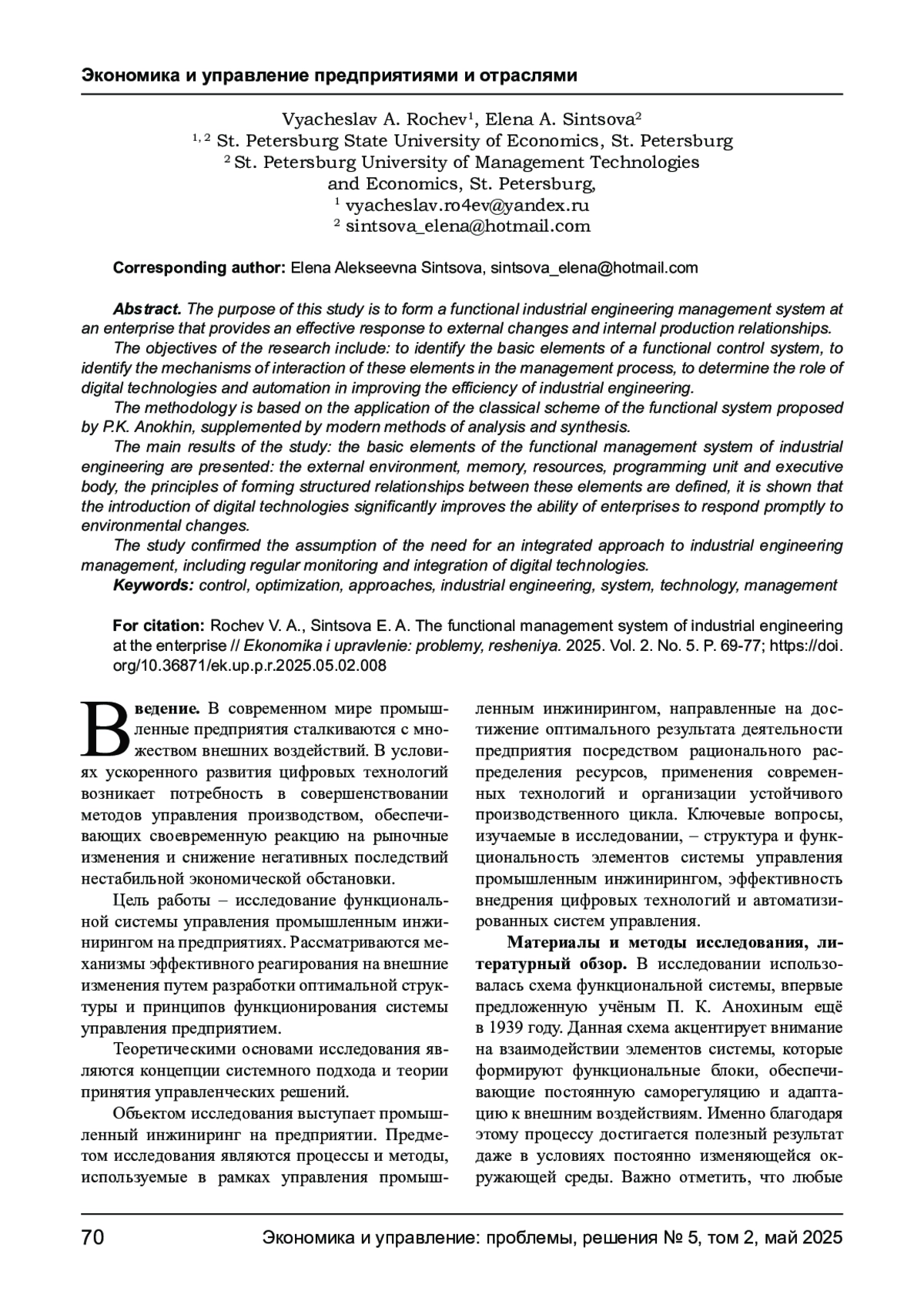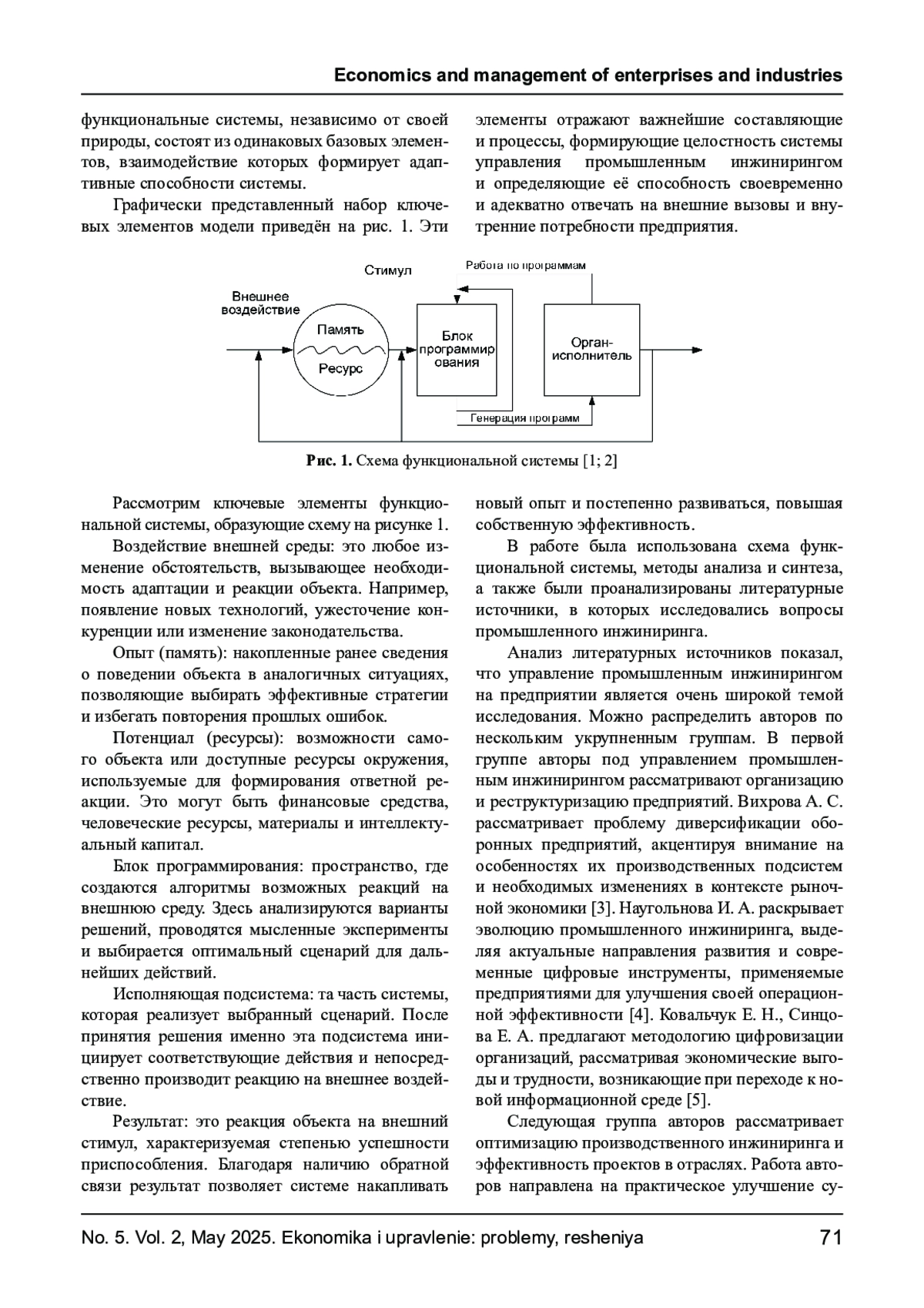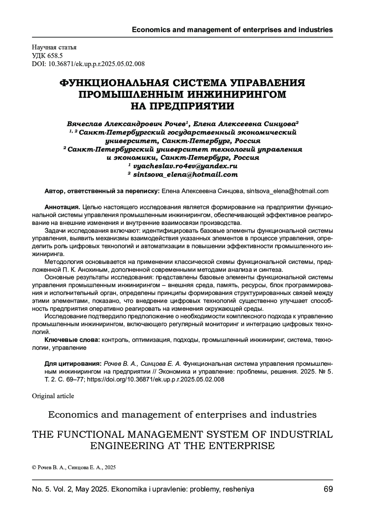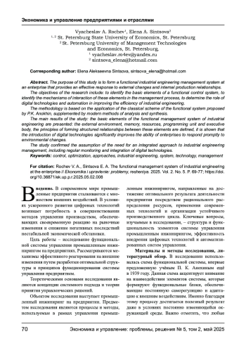 Задачи исследования включают: идентифицировать базовые элементы функциональной системы управления, выявить механизмы взаимодействия указанных элементов в процессе управления, определить роль цифровых технологий и автоматизации в повышении эффективности промышленного инжиниринга.