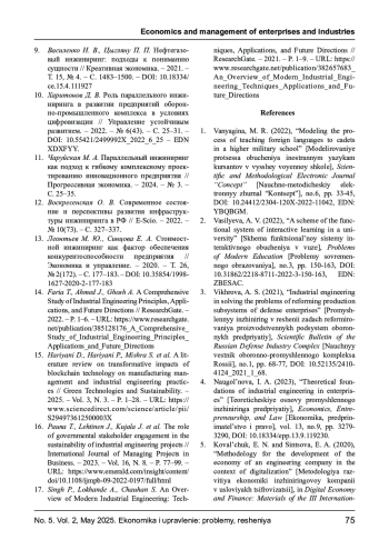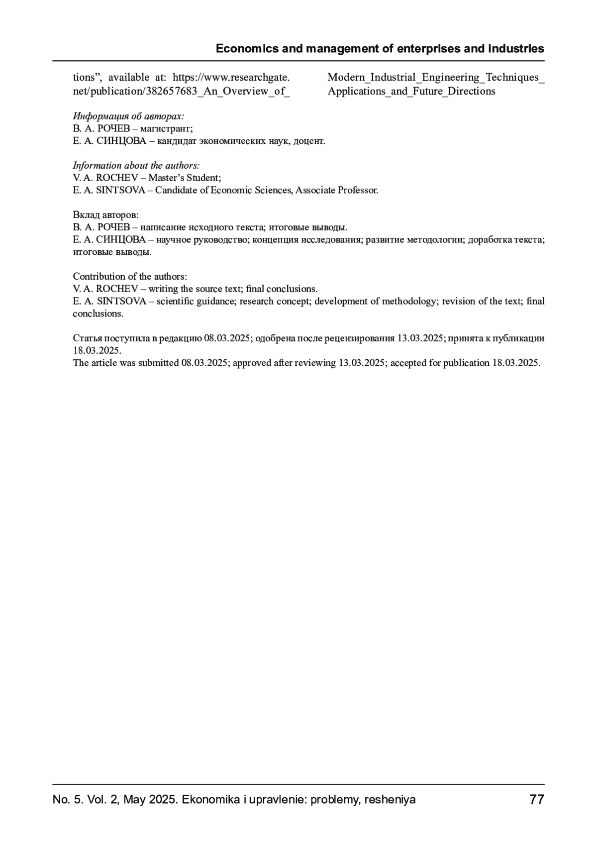 14. Faria T., Ahmed J., Ghosh A. A Comprehensive Study of Industrial Engineering Principles, Applications, and Future Directions // ResearchGate. - 2022. - P. 1-6. - URL: https://www.researchgate.net/publication/385128176_A_Comprehensive_Study_of_Industrial_Engineering_Principles_Applications_and_Future_Directions.