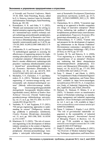 4. Наугольнова И. А. Теоретические основы промышленного инжиниринга предприятий // Экономика, предпринимательство и право. - 2023. - Т. 13, № 9. - С. 3279-3290. -. DOI: 10.18334/epp.13.9.119230 EDN: OAKTQO