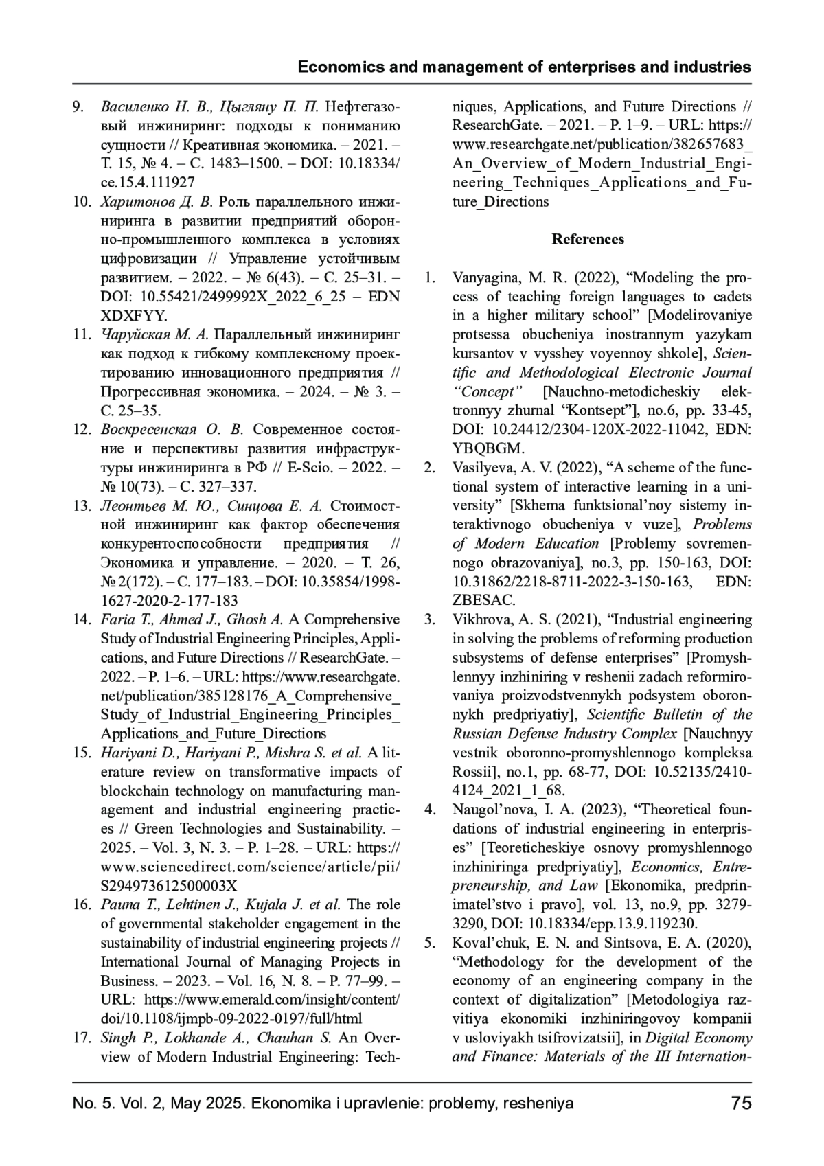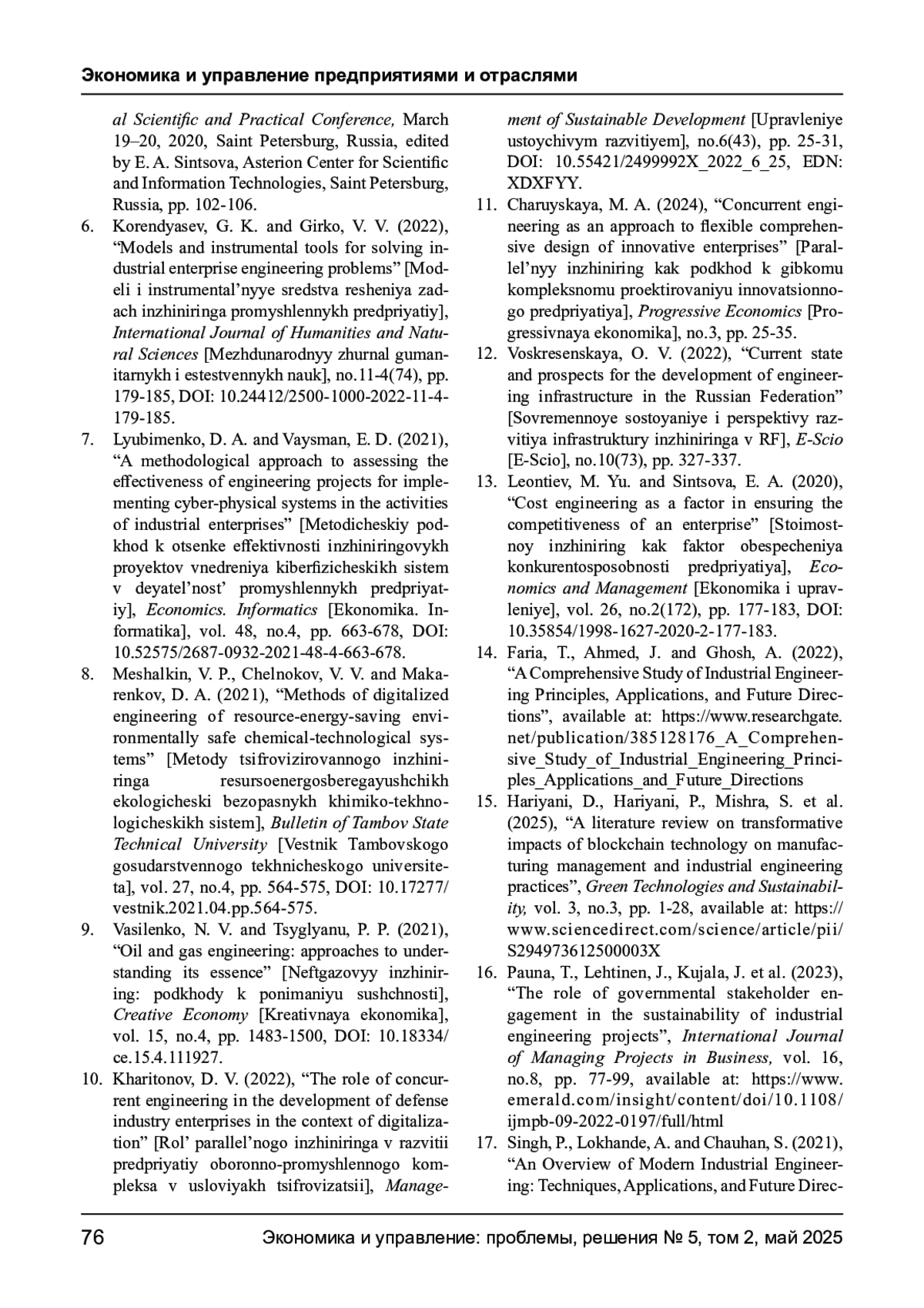 12. Воскресенская О. В. Современное состояние и перспективы развития инфраструктуры инжиниринга в РФ // E-Scio. - 2022. - № 10(73). - С. 327-337. EDN: HUADMO
