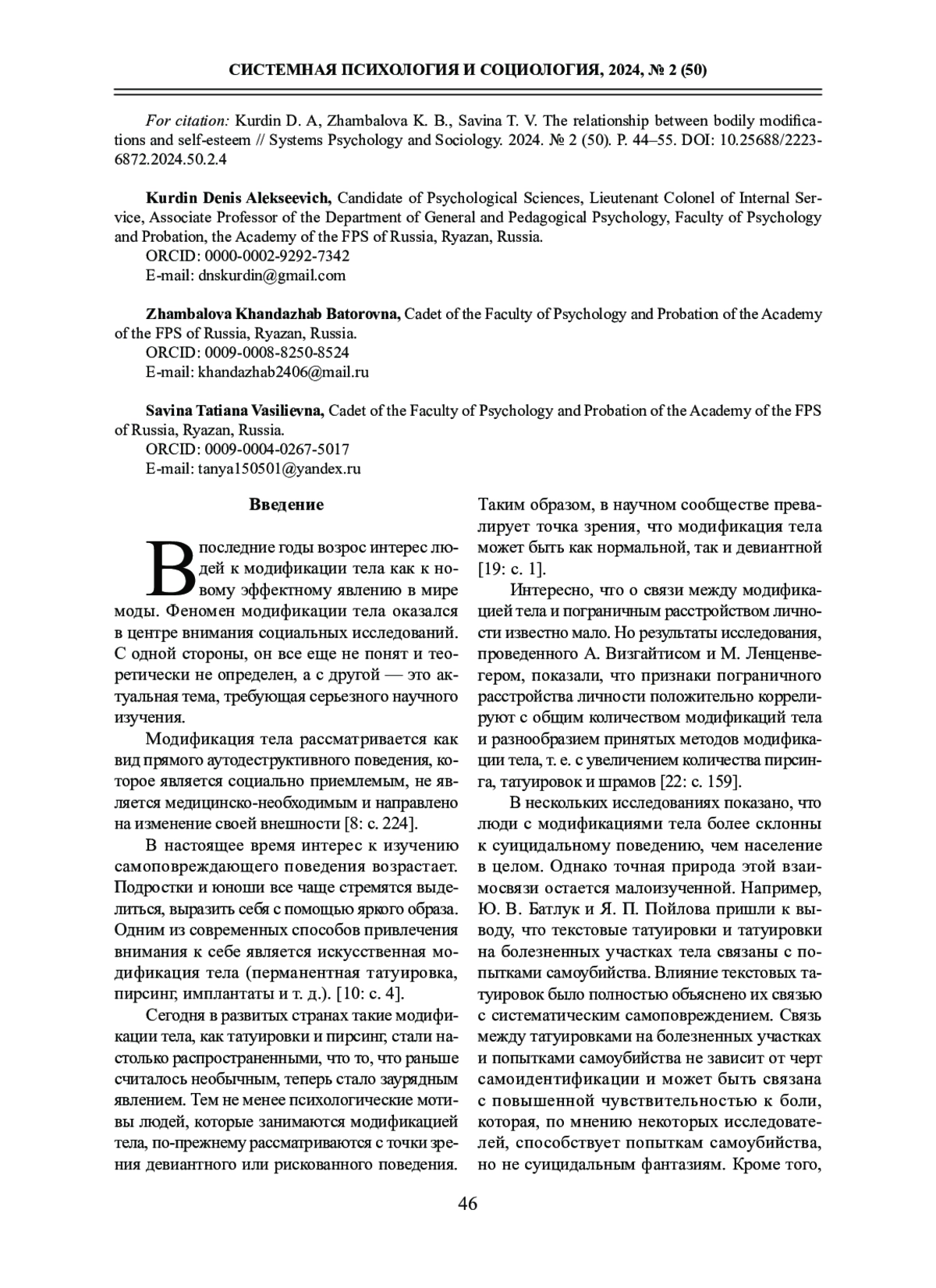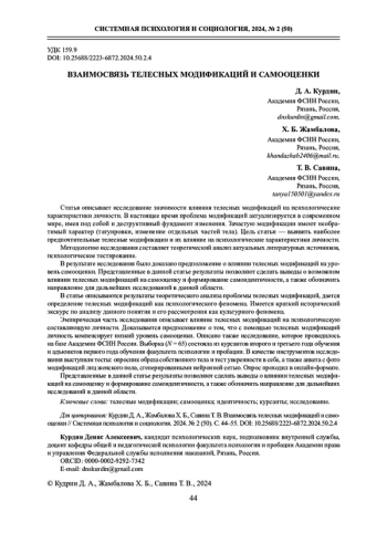 7. Body modification and self-destructive behavior in adolescents: psychological manifestations / N. Maksimova et al. // Proceedings of the 2019 International Conference on Pedagogy, Communication and Sociology (ICPCS 2019). Atlantis Press, 2019. P. 417-420. DOI: 10.2991/ICPCS-19.2019.92
