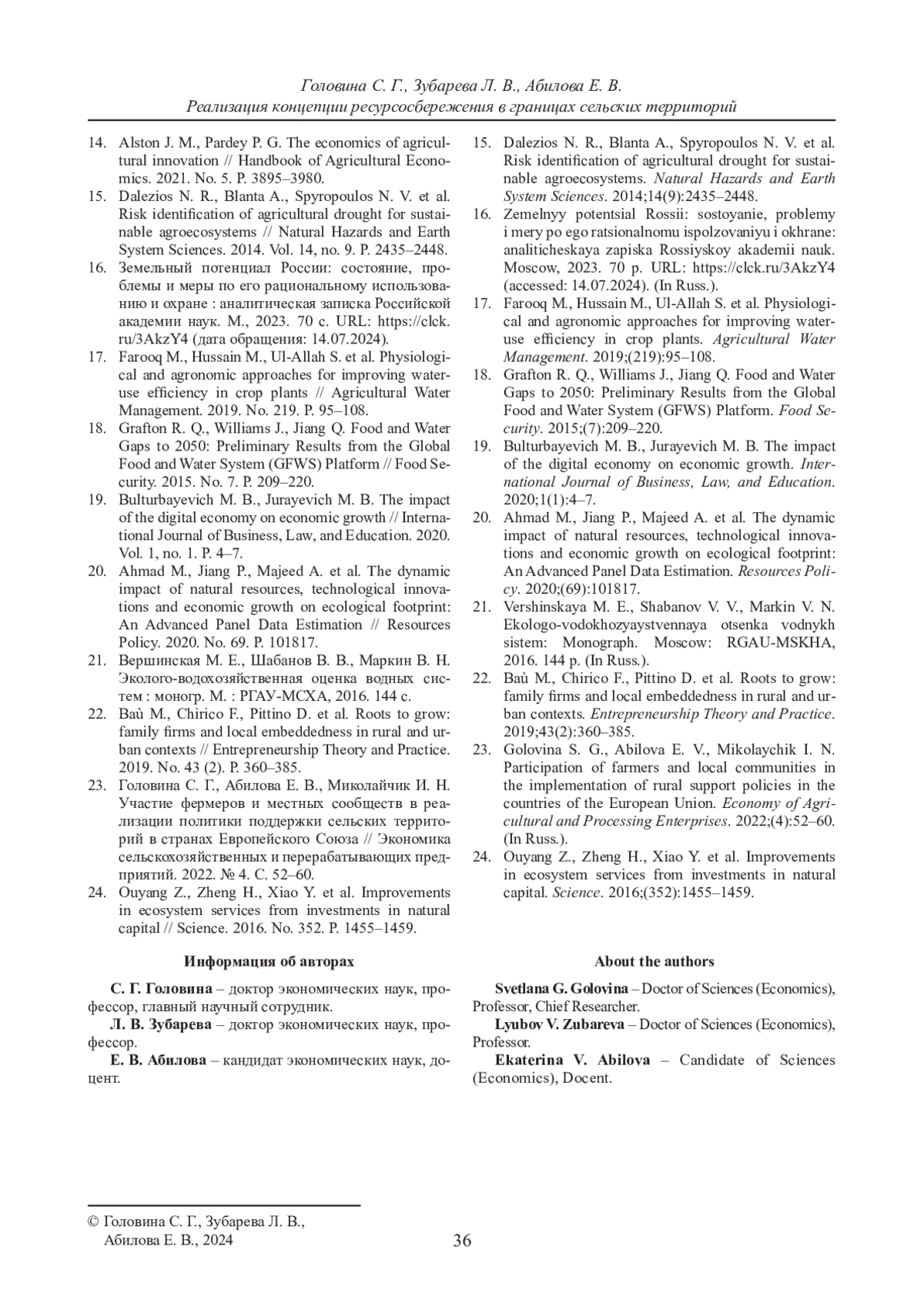23. Головина С. Г., Абилова Е. В., Миколайчик И. Н. Участие фермеров и местных сообществ в реализации политики поддержки сельских территорий в странах Европейского Союза // Экономика сельскохозяйственных и перерабатывающих предприятий. 2022. № 4. С. 52-60.