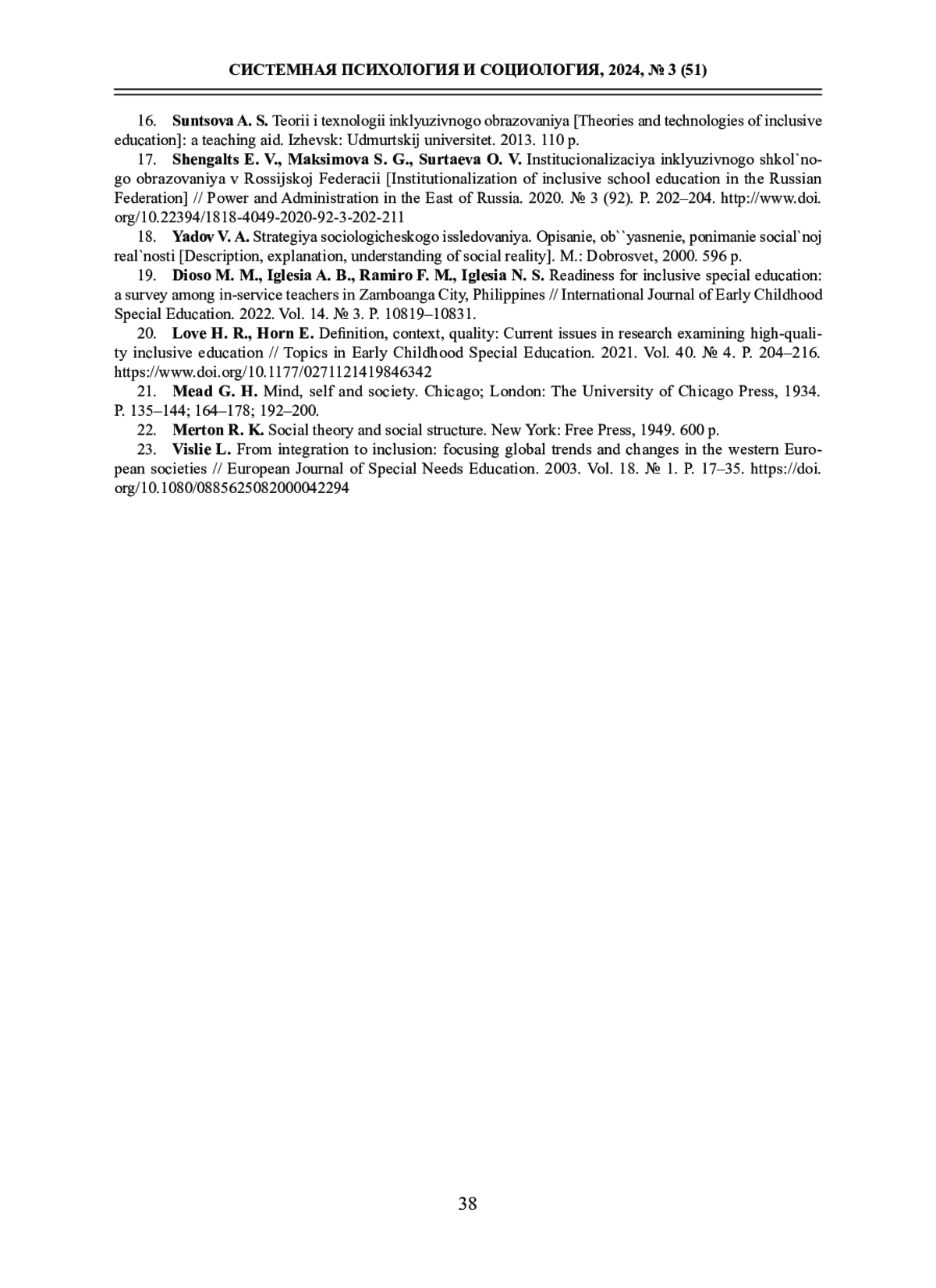 23. Vislie L. From integration to inclusion: focusing global trends and changes in the western European societies // European Journal of Special Needs Education. 2003. Vol. 18. № 1. P. 17-35. DOI: 10.1080/0885625082000042294