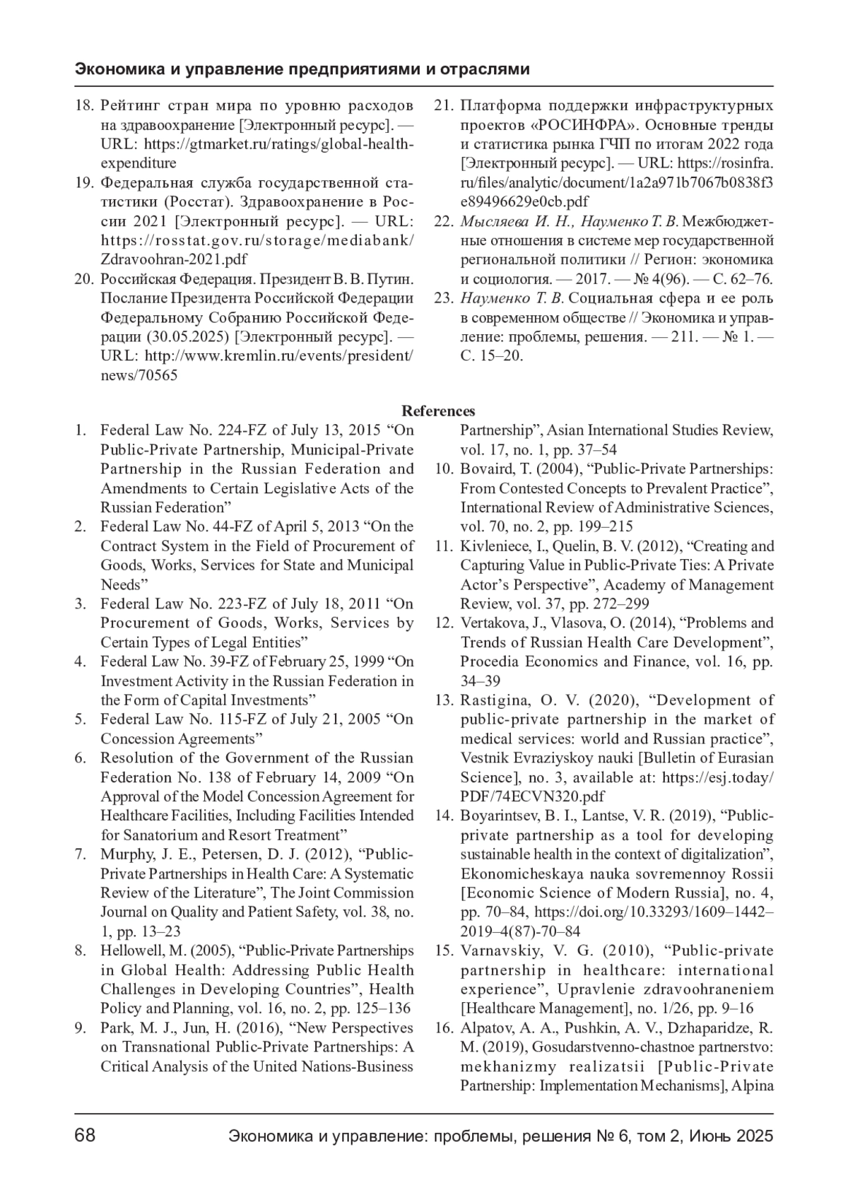 13. Растригина О. В. Развитие государственно- частного партнерства на рынке медицинских услуг: мировая и российская практика // Вестник евразийской науки. - 2020. - № 3. - URL: https://esj.today/PDF/74ECVN320.pdf.