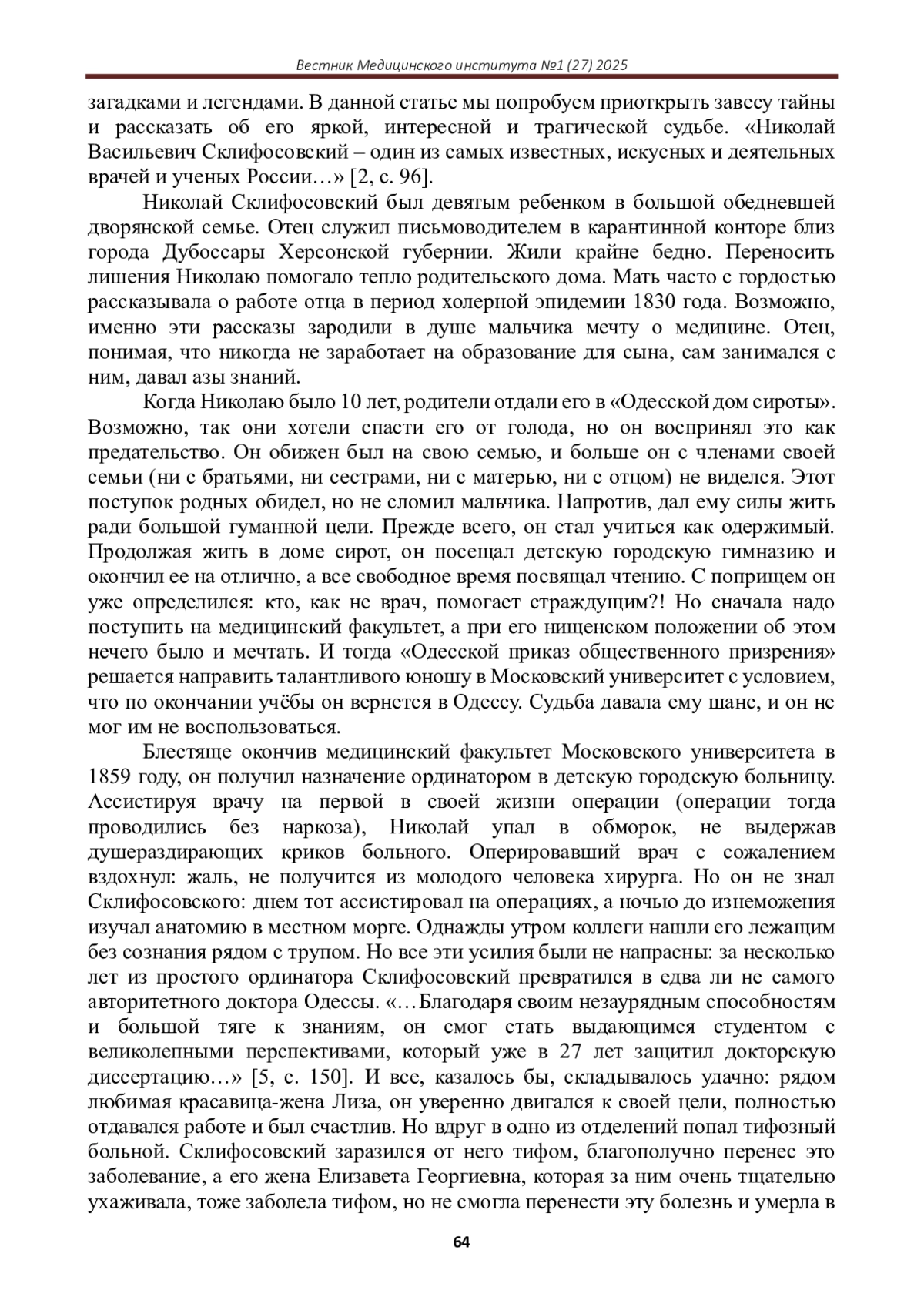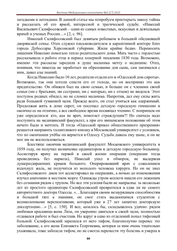 5. Ястребцев, М.С., Вождаева, И.В., Шлепотина, Н.М. Вклад Н.В. Склифосовского в развитие стоматологии // Вестник совета молодых ученых и специалистов Челябинской области. 2016. Т. 2, № 2 (13). - С. 150-152. EDN: WCKCWL