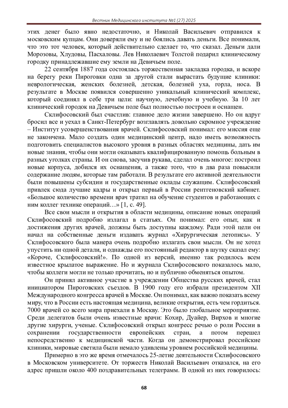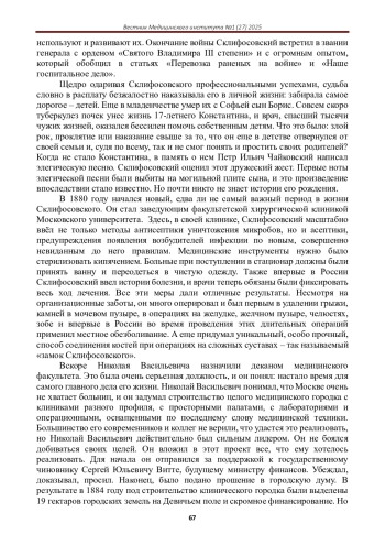 1. Казанцев, Ан. Д., Казанцев, Ал. Д., Коваленко, Ю.А. Как Склифосовский клинику организовал // Вестник совета молодых ученых и специалистов Челябинской области. 2016. Т. 2, № 2 (13). - С. 49-53. EDN: WCKCLH