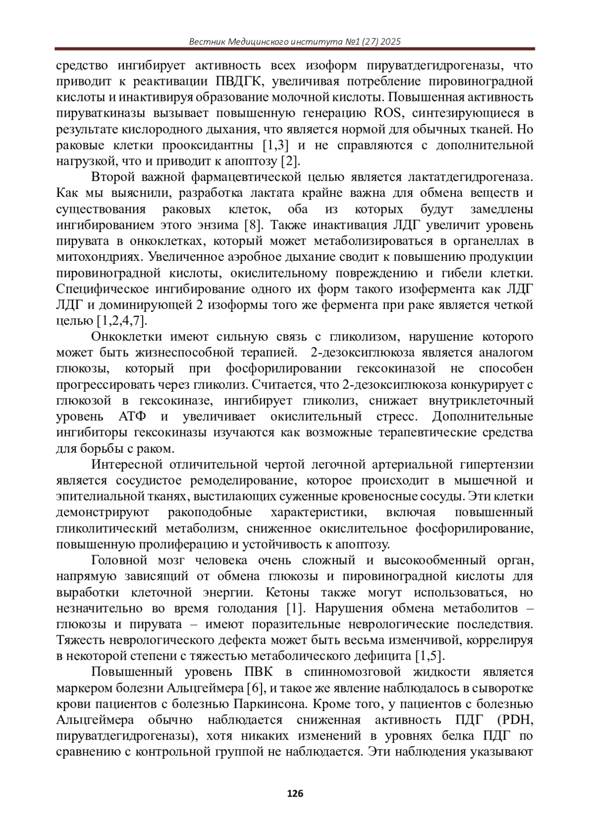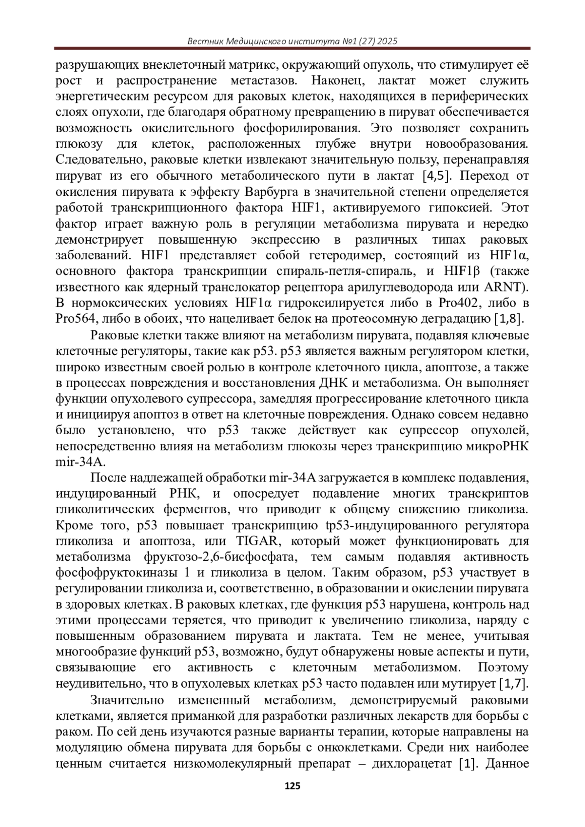 Пируват занимает критический узел в центральном углеродном метаболизме. Измененный метаболизм пирувата может вызвать заболевание. Нарушения метаболизма пирувата тесно связаны с развитием таких заболеваний, как рак, нейродегенеративные расстройства, сердечная недостаточность и другие состояния, которые будут подробно рассмотрены в обзоре. Многие раковые клетки частично определяются метаболическим переключением, называемым эффектом Варбурга, при котором гликолитический поток углерода сильно повышается, а окислительное фосфорилирование значительно понижается. Метаболитов, участвующих в этом обмене веществ, достаточно; они различаются в зависимости от вида онкологии. В данном обзоре будут обсуждаться основные субъединицы, такие как PKM2, HIF1, p53, и их связи с обменом ПВК. Также рассматриваются потенциальные методы лечения.