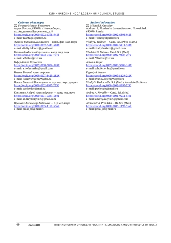 4. Мурылев В.Ю., Усубалиев Б.Т., Музыченков А.В., Куковенко Г.А., Елизаров П.М., Корешкова Д.А. Остеопороз и асептическое расшатывание компонентов эндопротеза после эндопротезирования суставов. Кафедра травматологии и ортопедии. 2022;41(4):67-73. DOI: 10.17238/2226-2016-2022-4-67-73