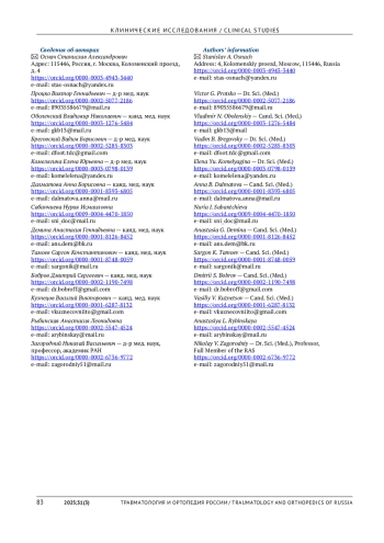 13. Оснач С.А., Оболенский В.Н., Процко В.Г., Борзунов Д.Ю., Загородний Н.В., Тамоев С.К. Метод двухэтапного лечения пациентов с тотальными и субтотальными дефектами стопы при нейроостеоартропатии Шарко. Гений ортопедии. 2022;28(4):523-531. DOI: 10.18019/1028-4427-2022-28-4-523-531