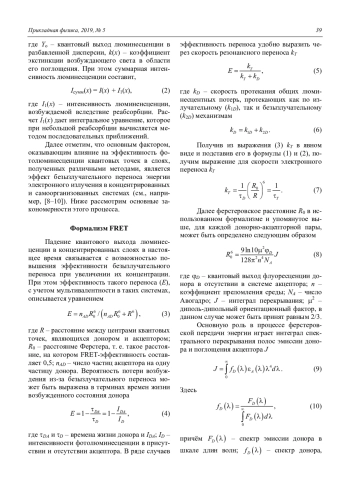 Статья: Влияние безызлучательного переноса энергии электронного возбуждения на эффективность люминесцентных сенсоров (2019)