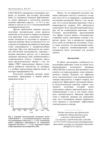 Ключевые фразы: квантовые точки, fret, фотолюминесценция, безызлучательный перенос энергии электронного излучения, трансдьюсеры, люминесцентные сенсоры