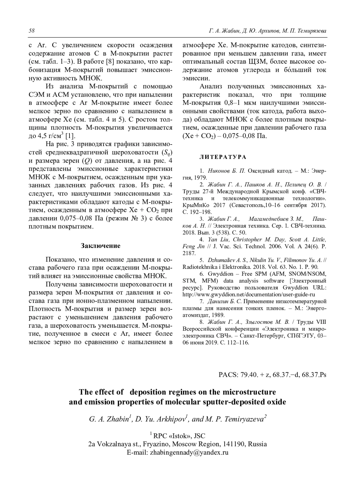 G. A. Zhabin, D. Yu. Arkhipov, and M. P. Temiryazeva The effect of deposition regimes on the microstructure and emission properties of molecular sputter-deposited oxide 54