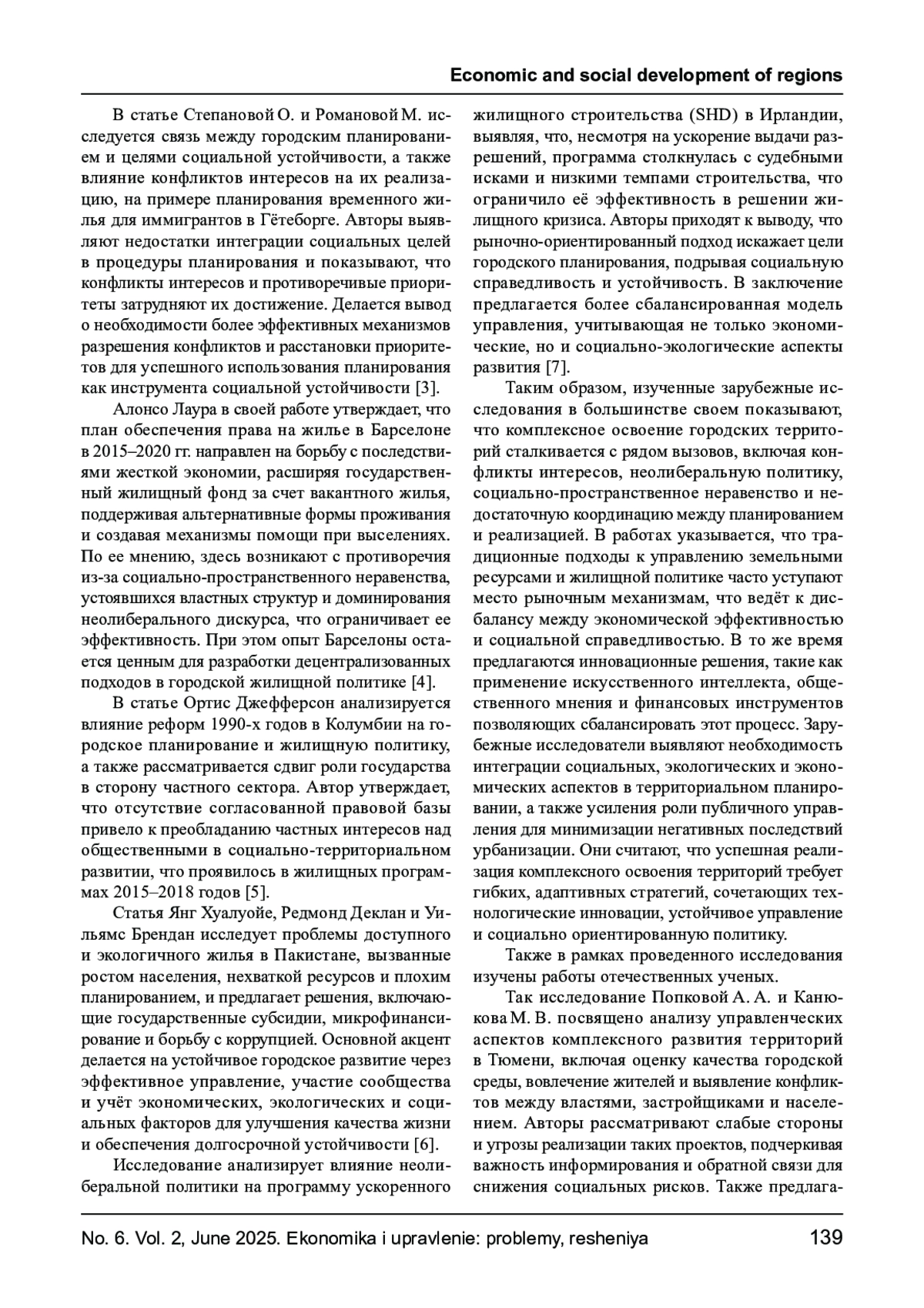 6. Ya n g Hualuoye, Redmond D., Williams B. Planning policies and housing development: evaluating Ireland’s fast-track planning scheme 2017-2021 // Land. - 2024. - Vol. 13. - P. 2044. - 10.3390/ land13122044. DOI: 10.3390/land13122044