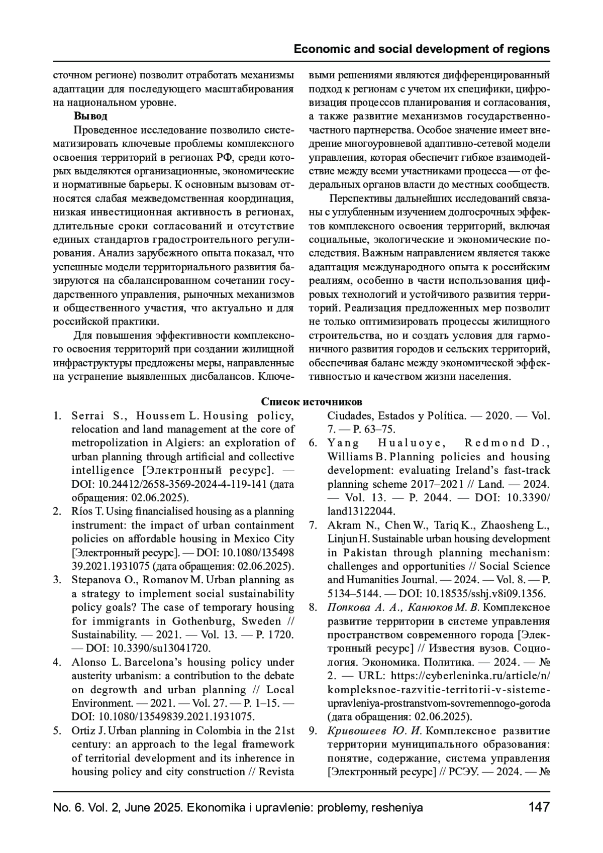 1. Serrai S., Houssem L. Housing policy, relocation and land management at the core of metropolization in Algiers: an exploration of urban planning through artificial and collective intelligence [Электронный ресурс]. - 10.24412/2658-3569-2024-4-119-141 (дата обращения: 02.06.2025). DOI: 10.24412/2658-3569-2024-4-119-141(