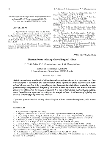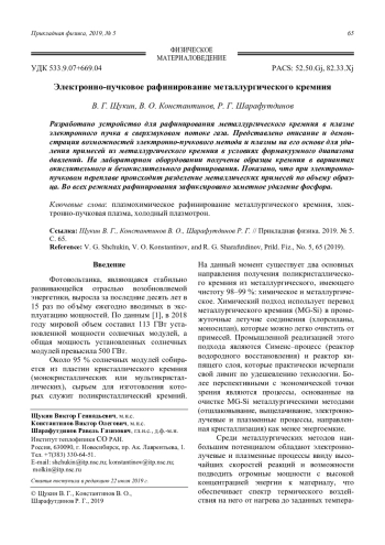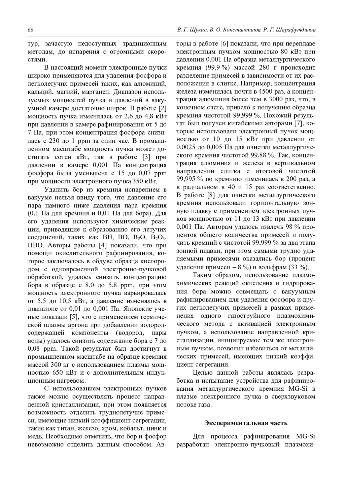 Щукин В. Г., Константинов В. О., Шарафутдинов Р. Г. Электронно-пучковое рафинирование металлургического кремния 65