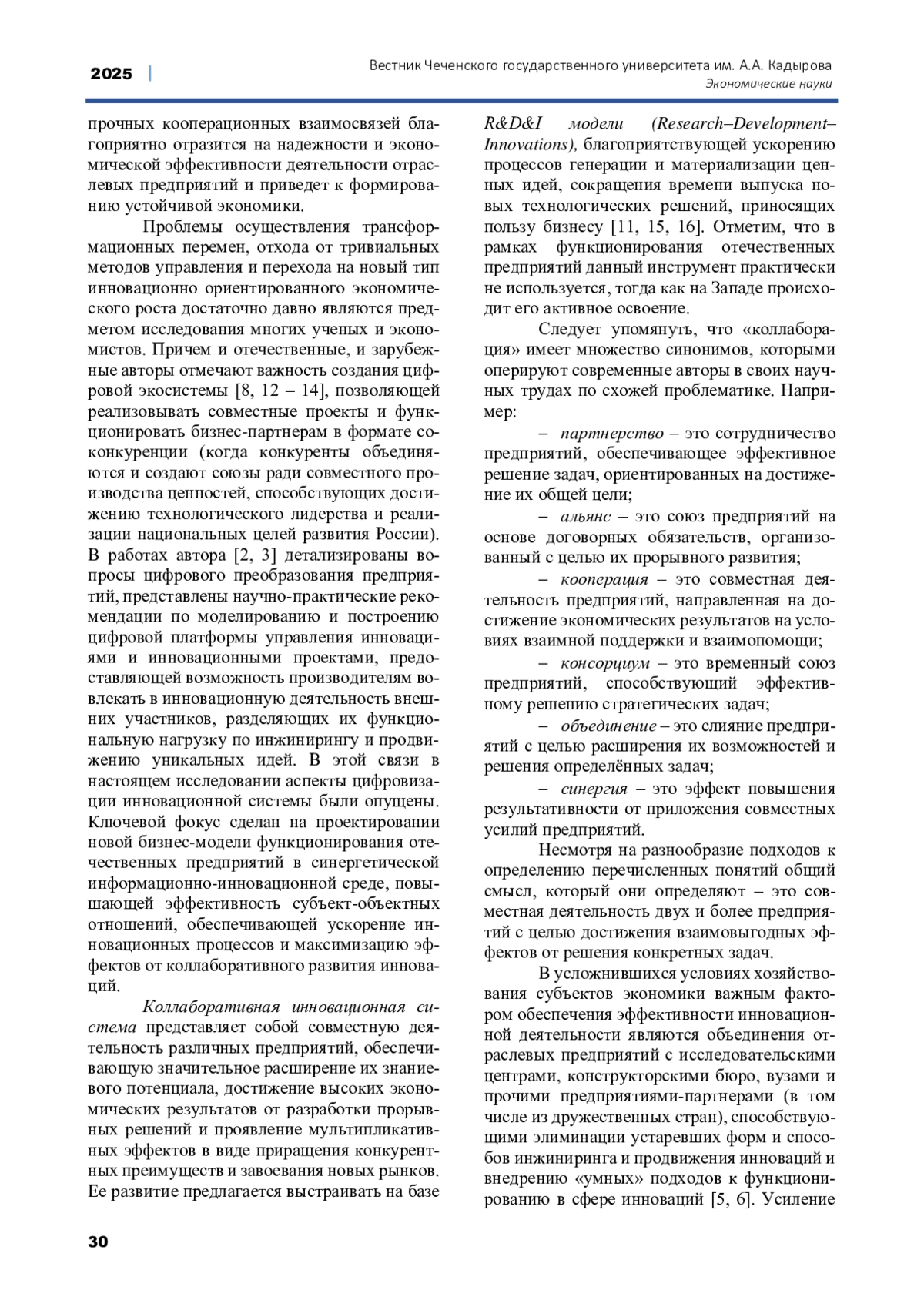 ВАСЯЙЧЕВА В. А. РАЗВИТИЕ КОЛЛАБОРАТИВНОЙ ИННОВАЦИОННОЙ СИСТЕМЫ // ВЕСТНИК ЧЕЧЕНСКОГО ГОСУДАРСТВЕННОГО УНИВЕРСИТЕТА ИМ. А. А. КАДЫРОВА. 2025. № 2 (58)