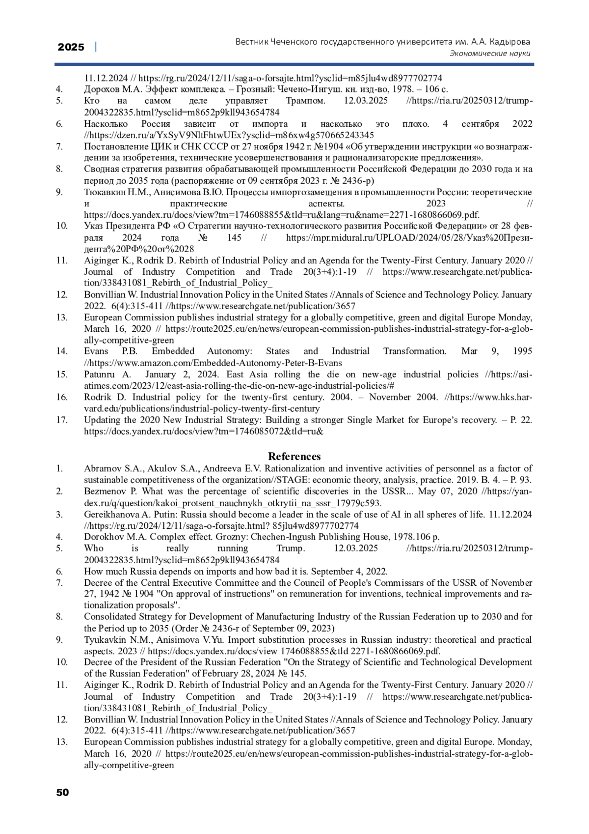 11. Aiginger K., Rodrik D. Rebirth of Industrial Policy and an Agenda for the Twenty-First Century. January 2020 // Journal of Industry Competition and Trade 20(3+4):1-19 // https://www.researchgate.net/publication/338431081_Rebirth_of_Industrial_Policy.