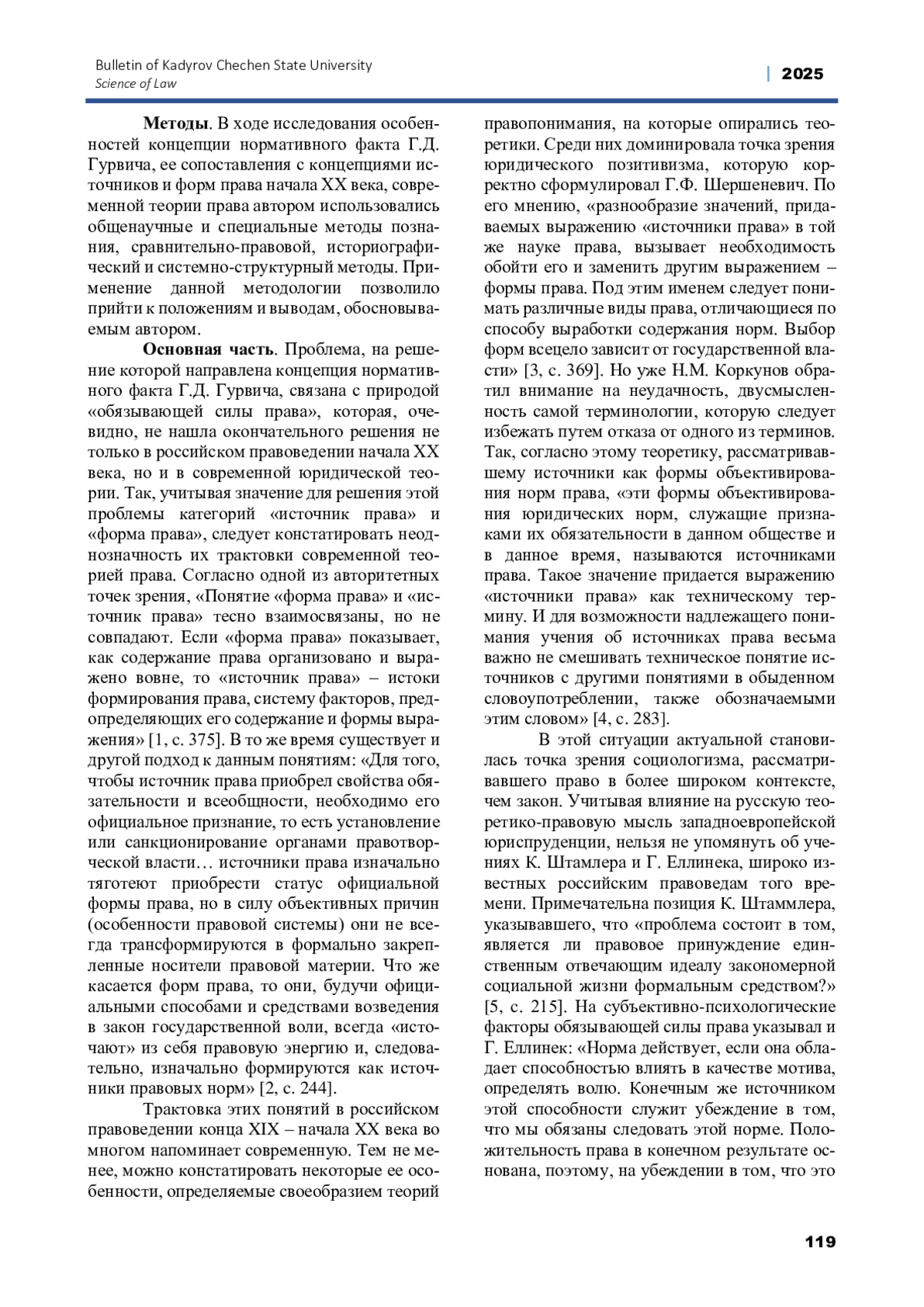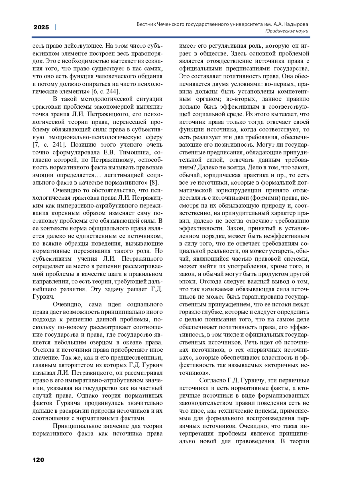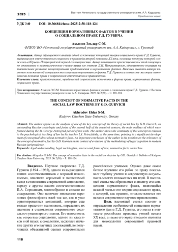 Автор обращается к анализу одной из ключевых концепций теории социального права Г. Д. Гурвича, выдающегося отечественного социолога и правоведа второй половины ХХ века, основные контуры которой сложились в Юрьево-Петроградский период его творчества. Автор показывает преемственность этой концепции по отношению к психологическому учению права его учителя Л. И. Петражицкого, одновременно указывая на значительное развитие концептуальных представлений о нормативных фактах. Важным выводом автора является положение об актуальности концепции нормативного факта Г. Д. Гурвича в контексте эволюции методологии познания права в современном отечественном правоведении.