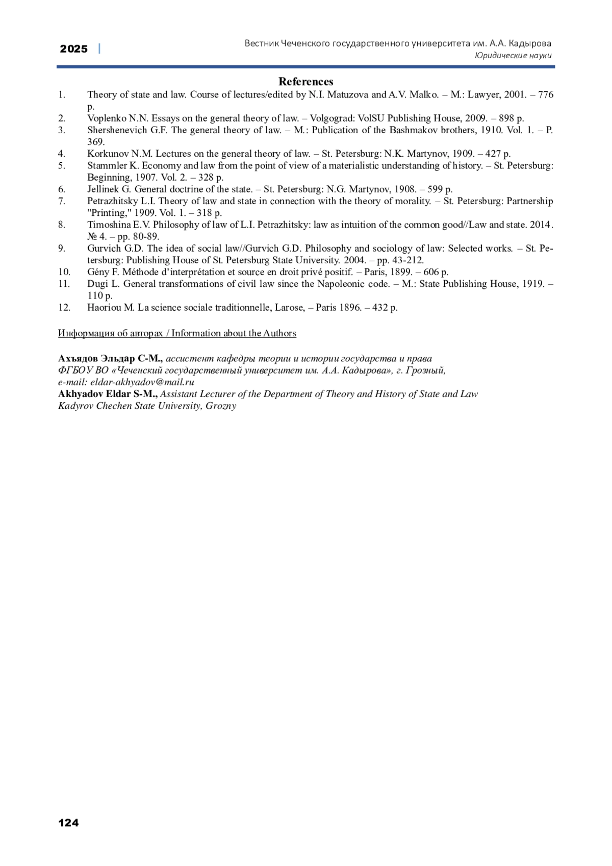 8. Тимошина Е.В. Философия права Л.И. Петражицкого: право как интуиция общего блага // Право и государство. 2014. № 4. - С. 80 - 89.