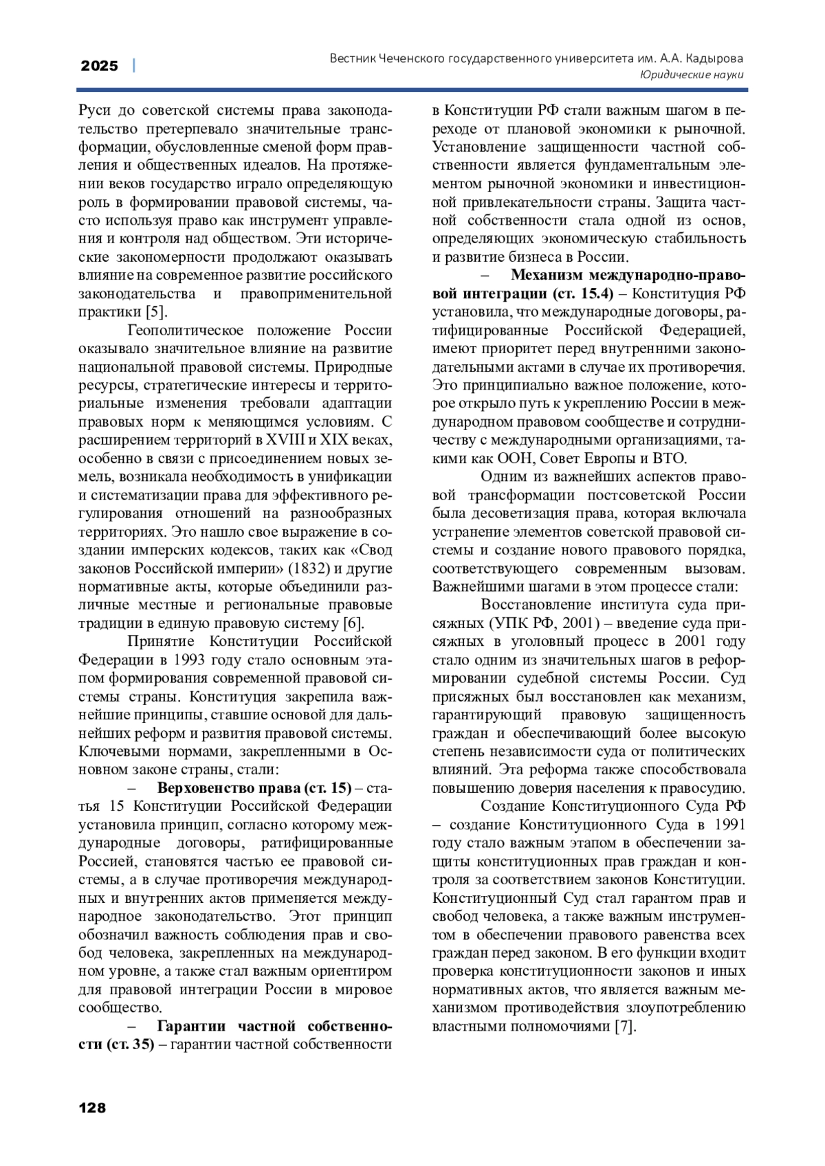 Одним из важнейших аспектов правовой трансформации постсоветской России была десоветизация права, которая включала устранение элементов советской правовой системы и создание нового правового порядка, соответствующего современным вызовам. Важнейшими шагами в этом процессе стали: Восстановление института суда присяжных (УПК РФ, 2001) – введение суда присяжных в уголовный процесс в 2001 году стало одним из значительных шагов в реформировании судебной системы России. Суд присяжных был восстановлен как механизм, гарантирующий правовую защищенность граждан и обеспечивающий более высокую степень независимости суда от политических влияний. Эта реформа также способствовала повышению доверия населения к правосудию.