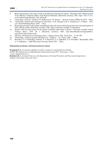 8. Краткая характеристика состояния преступности в Российской Федерации за январь - декабрь 2024 года. Официальный сайт МВД РФ. [Электронный ресурс]. URL: https://file:///C:/Users/User/Downloads/Sbornik_UOS_2024.pdf.