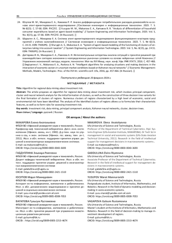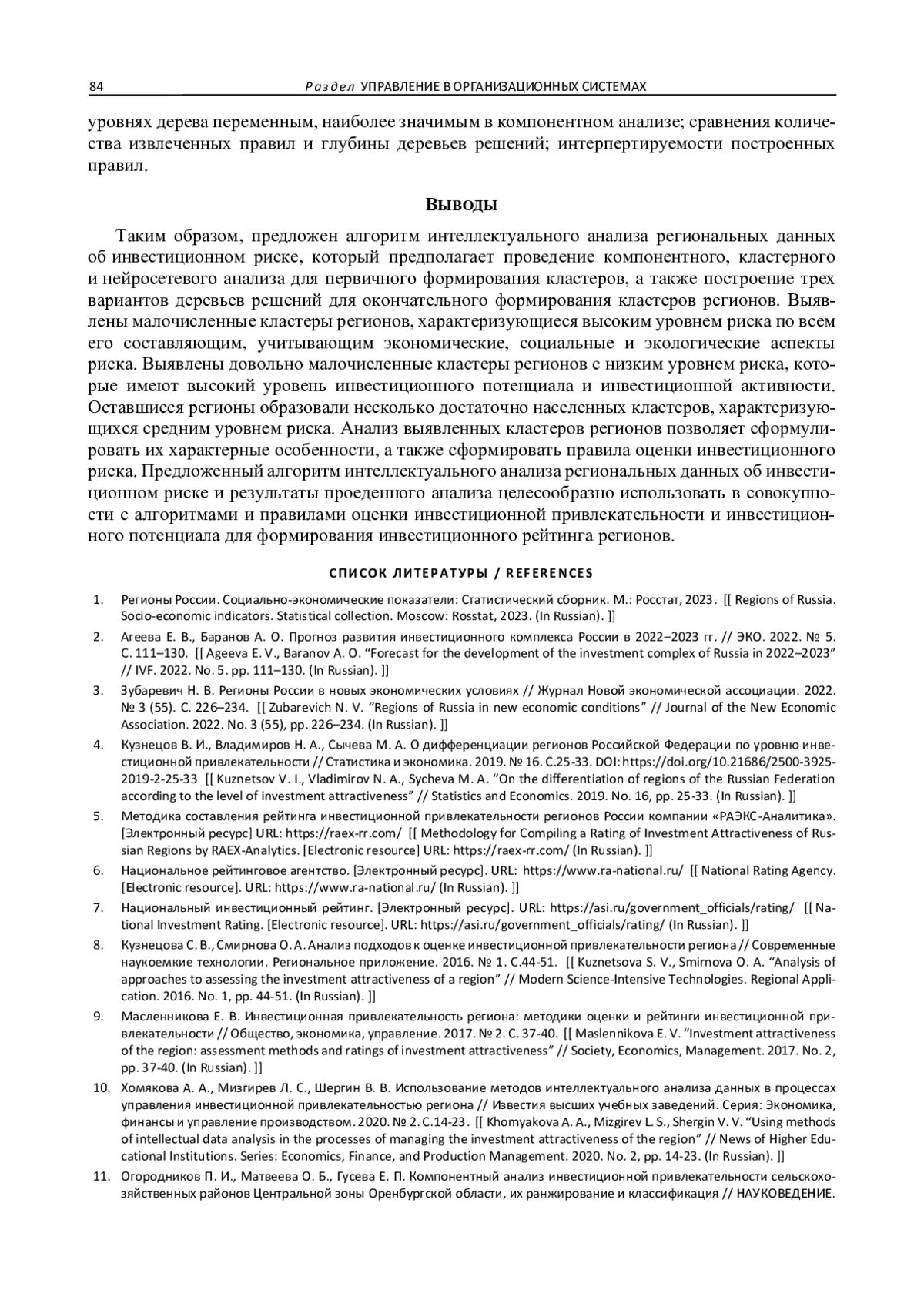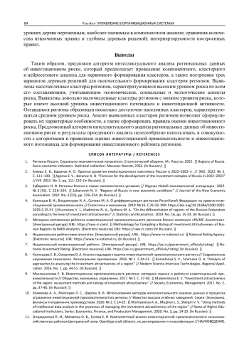 МАКАРОВА Е. А., ГАБДУЛЛИНА Э. Р., ЮСУПОВ М. М., ВАГАПОВА Г. Р. АЛГОРИТМ ИНТЕЛЛЕКТУАЛЬНОГО АНАЛИЗА РЕГИОНАЛЬНЫХ ДАННЫХ ОБ ИНВЕСТИЦИОННОМ РИСКЕ // СИСТЕМНАЯ ИНЖЕНЕРИЯ И ИНФОРМАЦИОННЫЕ ТЕХНОЛОГИИ. 2024. ТОМ 6, № 1(16)