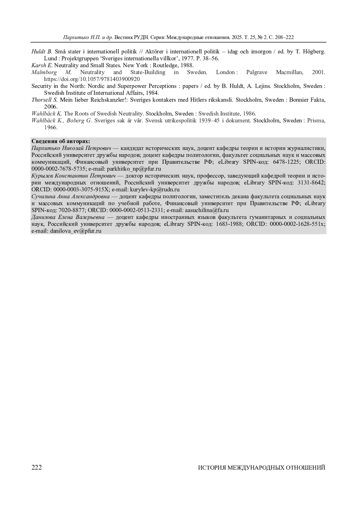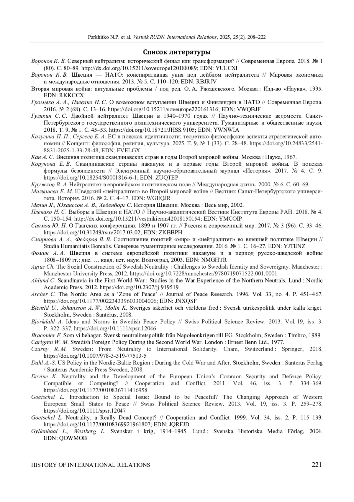 1. Воронов К. В. Северный нейтрализм: исторический финал или трансформация? // Современная Европа. 2018. № 1 (80). С. 80-89. ;. DOI: 10.15211/soveurope120188089 EDN: YULCXI