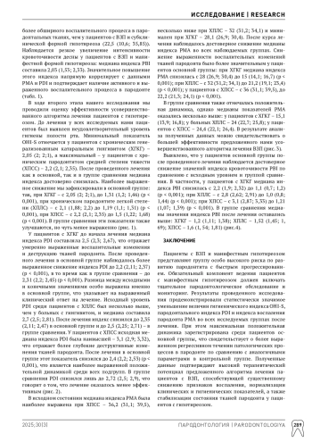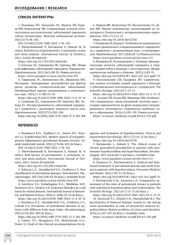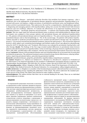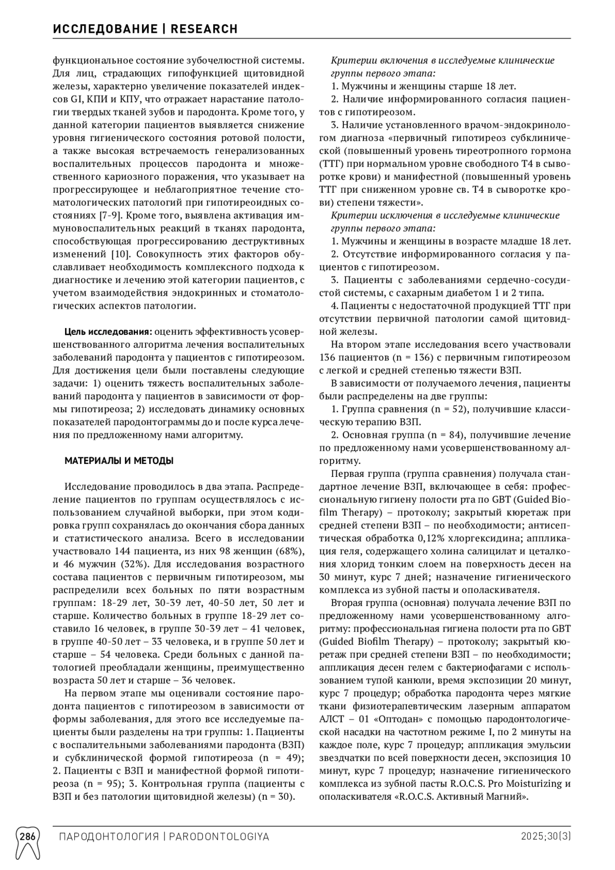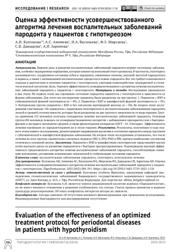 Статья: Оценка эффективности усовершенствованного алгоритма лечения воспалительных заболеваний пародонта у пациентов с гипотиреозом (2025)