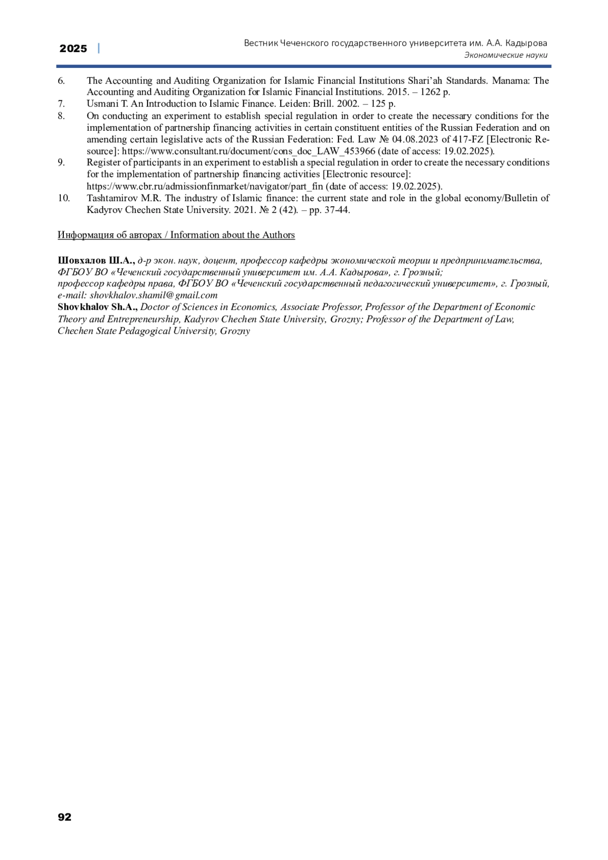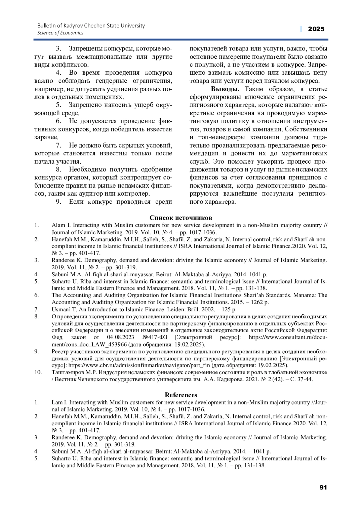 10. Таштамиров М.Р. Индустрия исламских финансов: современное состояние и роль в глобальной экономике / Вестник Чеченского государственного университета им. А.А. Кадырова. 2021. № 2 (42). - С. 37-44. EDN: ILBZYV