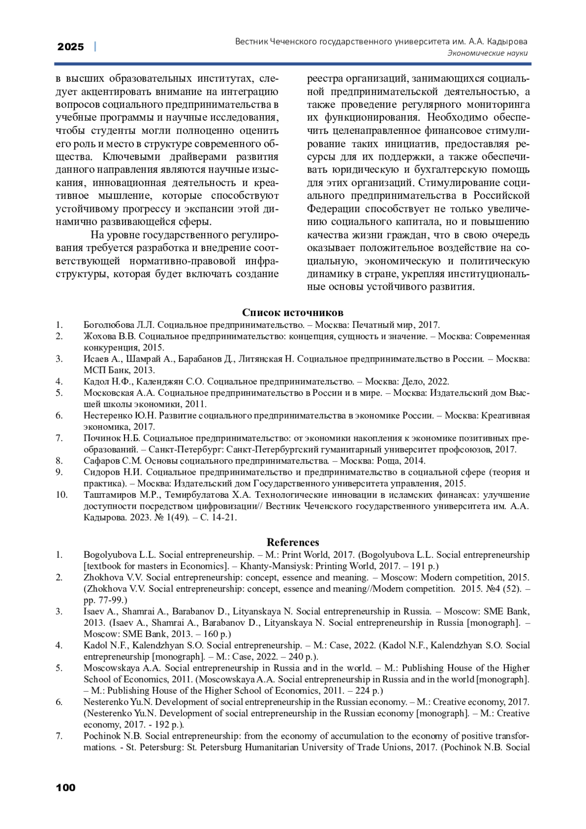 6. Нестеренко Ю.Н. Развитие социального предпринимательства в экономике России. - Москва: Креативная экономика, 2017. EDN: YGOLEZ