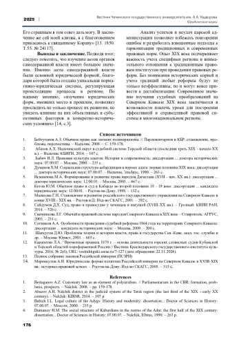 1. Бейтуганов А.З. Обычное право как элемент полиюридизма. // Парламентаризм в КБР: становление, проблемы, перспективы. - Нальчик. 2008. - С. 159-178.