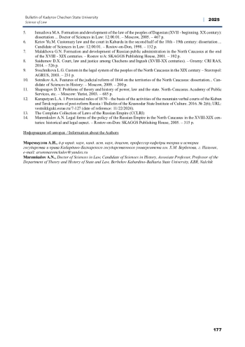 6. Кетов Ю.М. Обычное право и суд в Кабарде во второй половине 18 - 19 веке: диссертация.. кандидата юридических наук: 12.00.01. - Ростов-на-Дону, 1998. - 132 с. EDN: NLNZFH