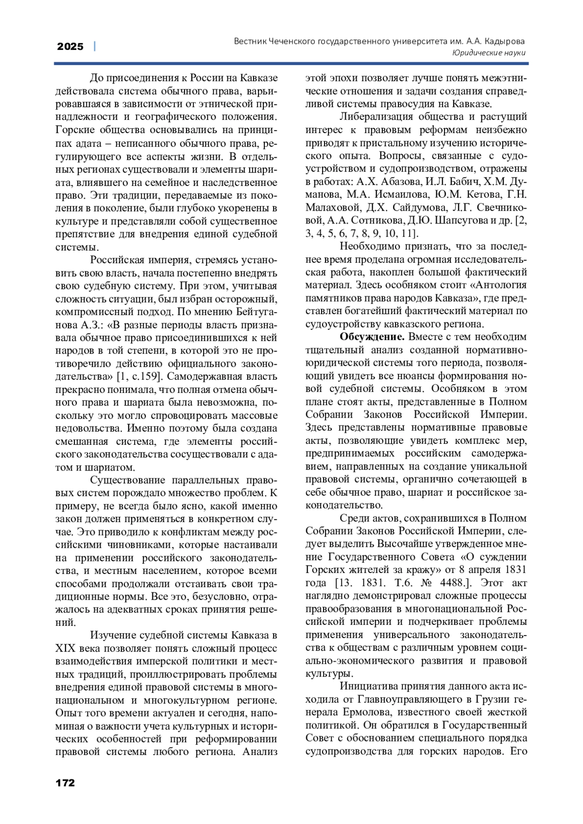 8. Сайдумов Д.Х. Суд, право и правосудие у чеченцев и ингушей (XVIII-XX вв.). - Грозный: КНИИ РАН, 2014. - 526 с. EDN: SKCGYJ