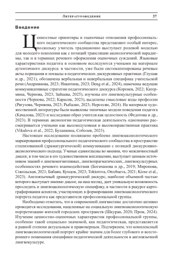 Статья: ЛИНГВОАКСИОЛОГИЧЕСКИЙ ПОРТРЕТ ПЕДАГОГА В АНГЛОЯЗЫЧНОМ ДРАМАТУРГИЧЕСКОМ ДИСКУРСЕ (2025)
