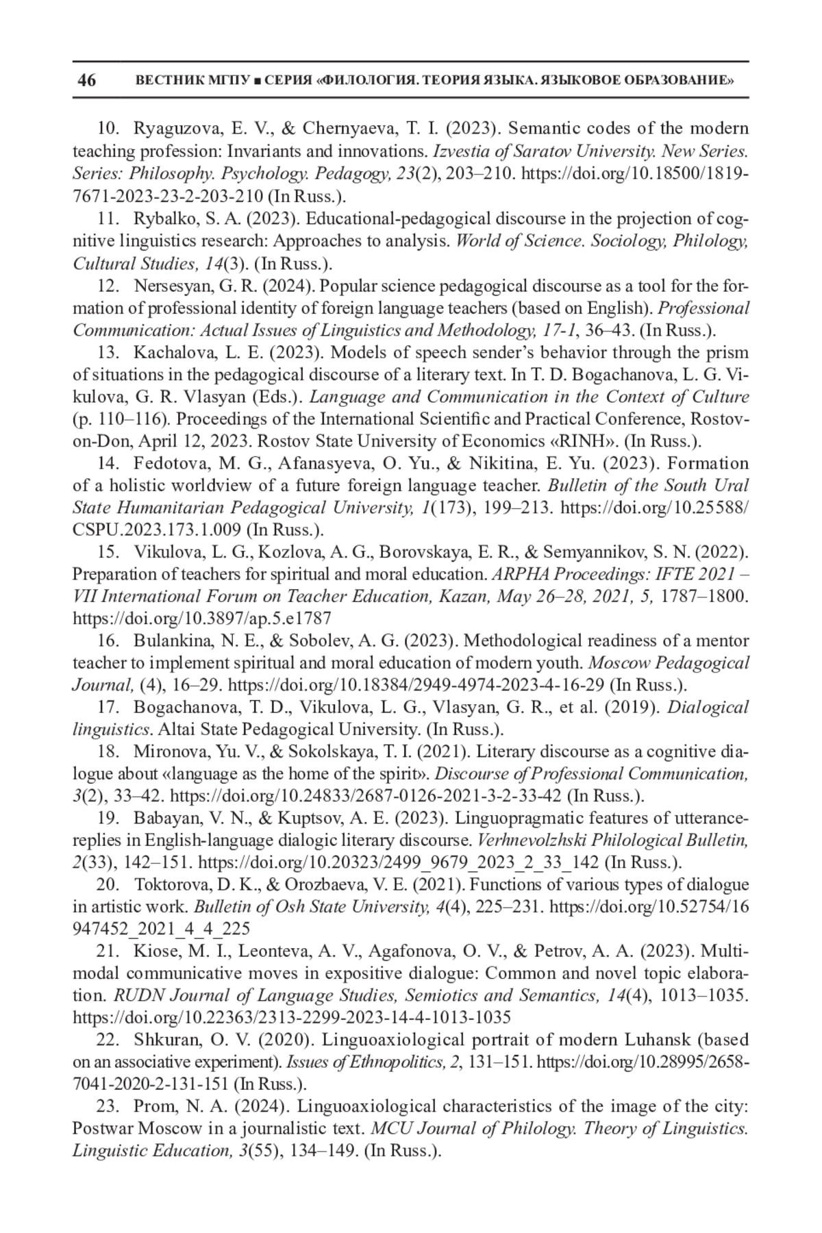 Журнал: ВЕСТНИК МГПУ. СЕРИЯ: ФИЛОЛОГИЯ. ТЕОРИЯ ЯЗЫКА. ЯЗЫКОВОЕ ОБРАЗОВАНИЕ