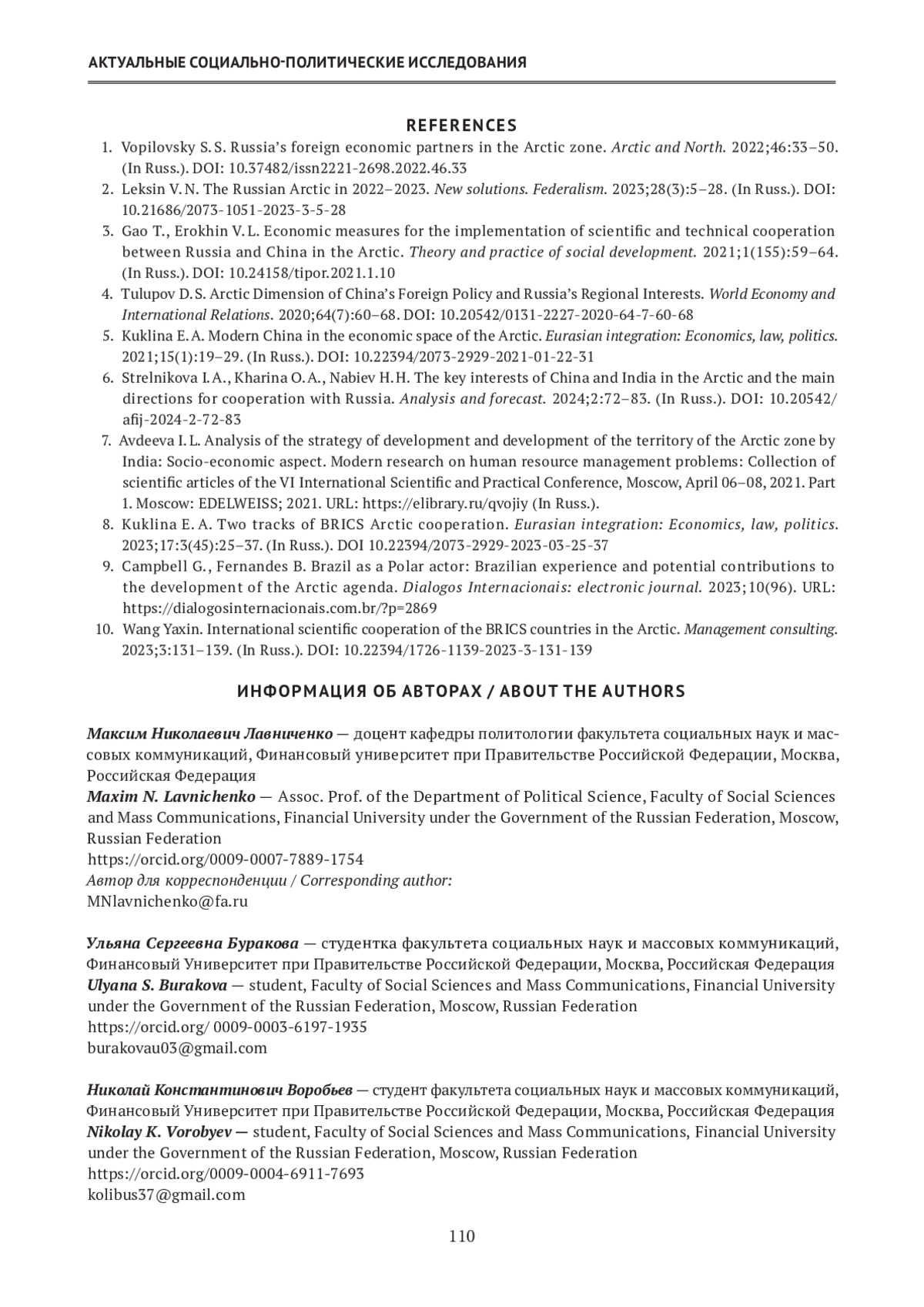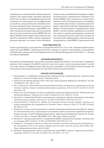 Статья: Экономические интересы стран БРИКС в Арктическом регионе (2025)