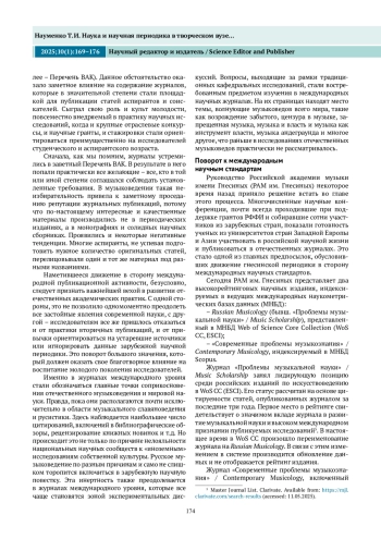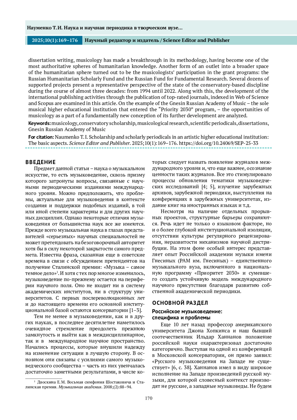 10. Науменко Т. И. “Научная карта России” как исследовательский проект: опыт систематизации музыкознания. Современные проблемы музыкознания / Contemporary Musicology. 2023;(1):56-71.