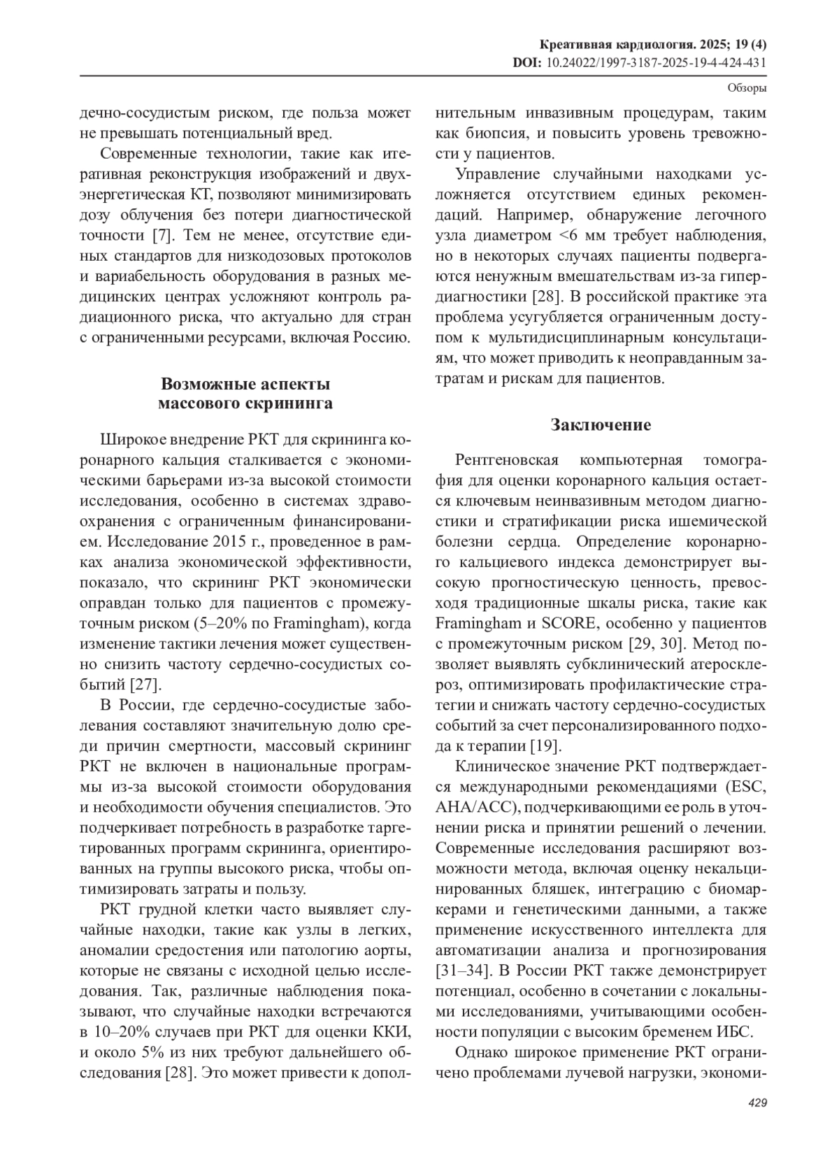 25. Барбараш О.Л., Кашталап В.В., Шибанова И.А., Коков А.Н. Фундаментальные и прикладные аспекты кальцификации коронарных артерий. Российский кардиологический журнал. 2020; 25 (S3): 44. DOI: 10.15829/1560-4071-2020-4005