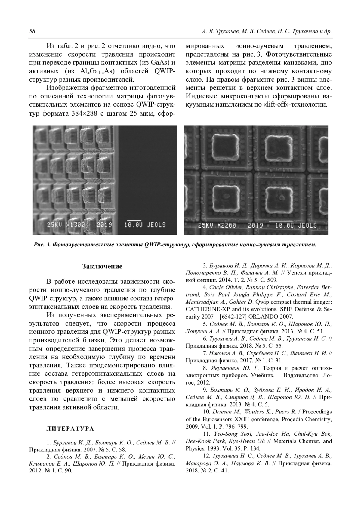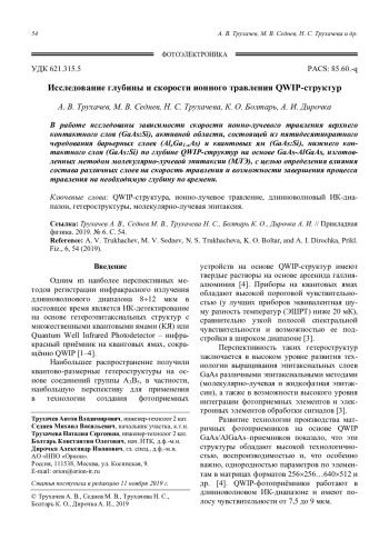 Трухачев А. В., Седнев М. В., Трухачева Н. С., Болтарь К. О., Дирочка А. И. Исследование глубины и скорости ионного травления QWIP-структур 54