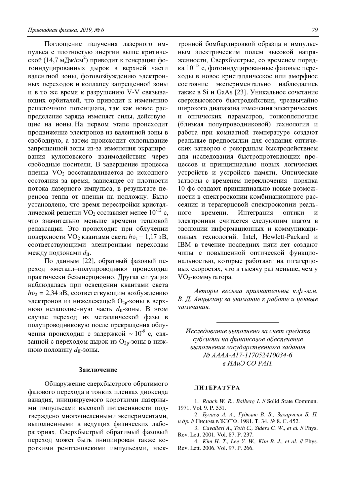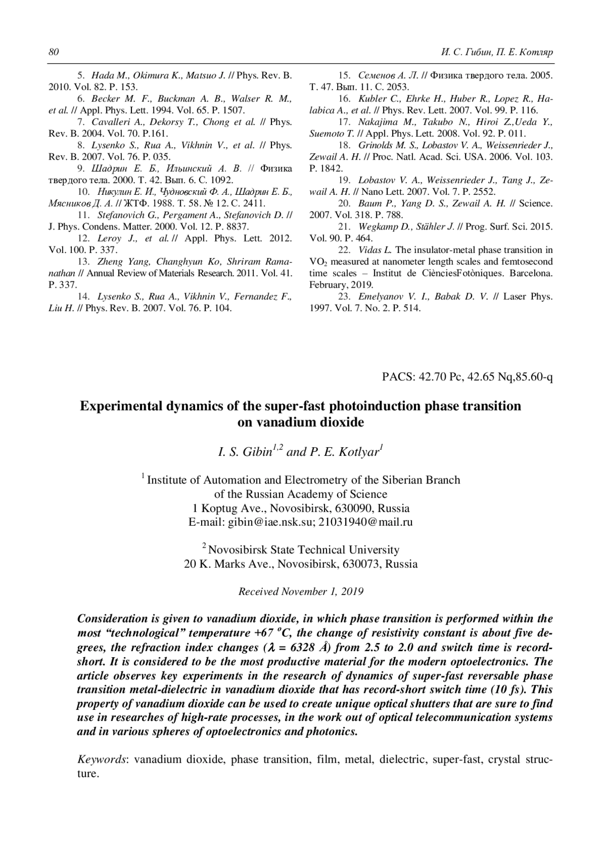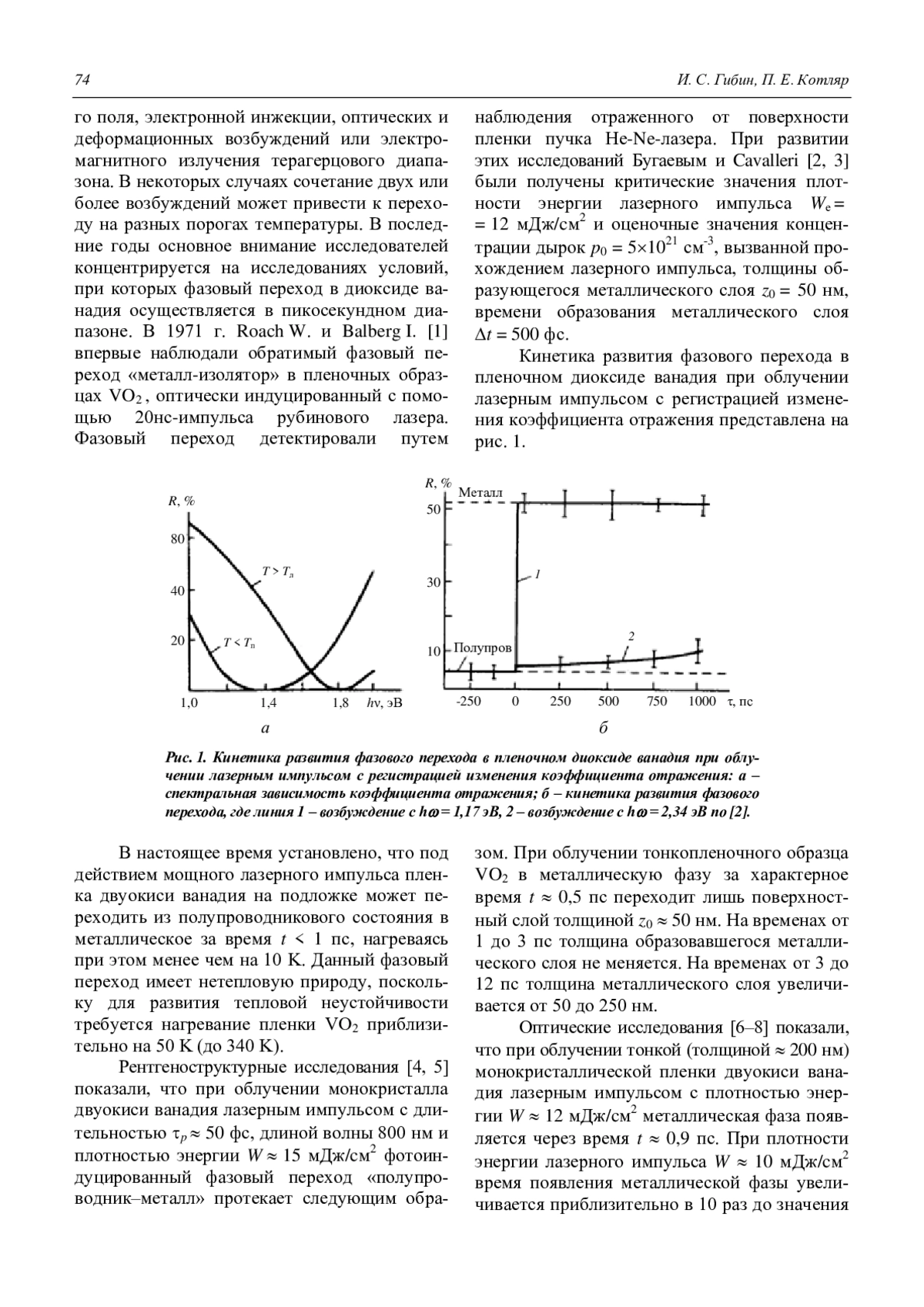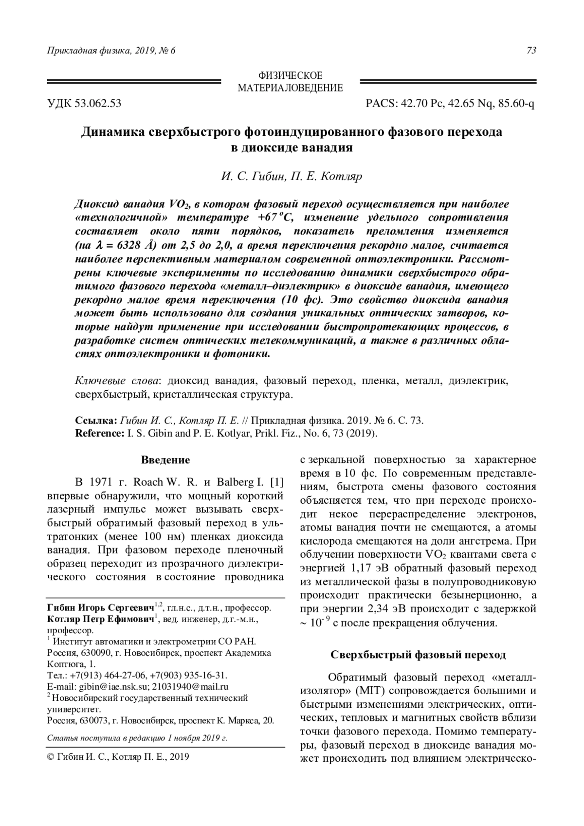 Гибин И. С., Котляр П. Е. Динамика сверхбыстрого фотоиндуцированного фазового перехода в диоксиде ванадия 73