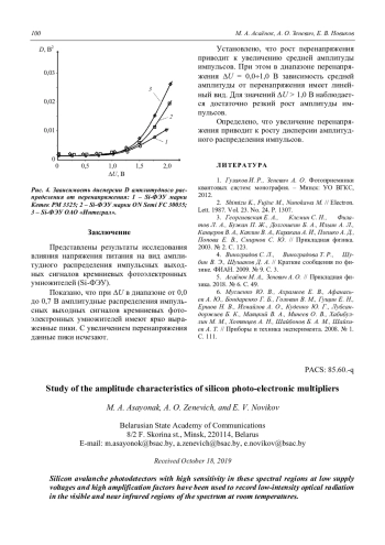 Асаёнок М. А., Зеневич А. О., Новиков Е. В. Исследование амплитудных характеристик кремниевых фотоэлектронных умножителей 96