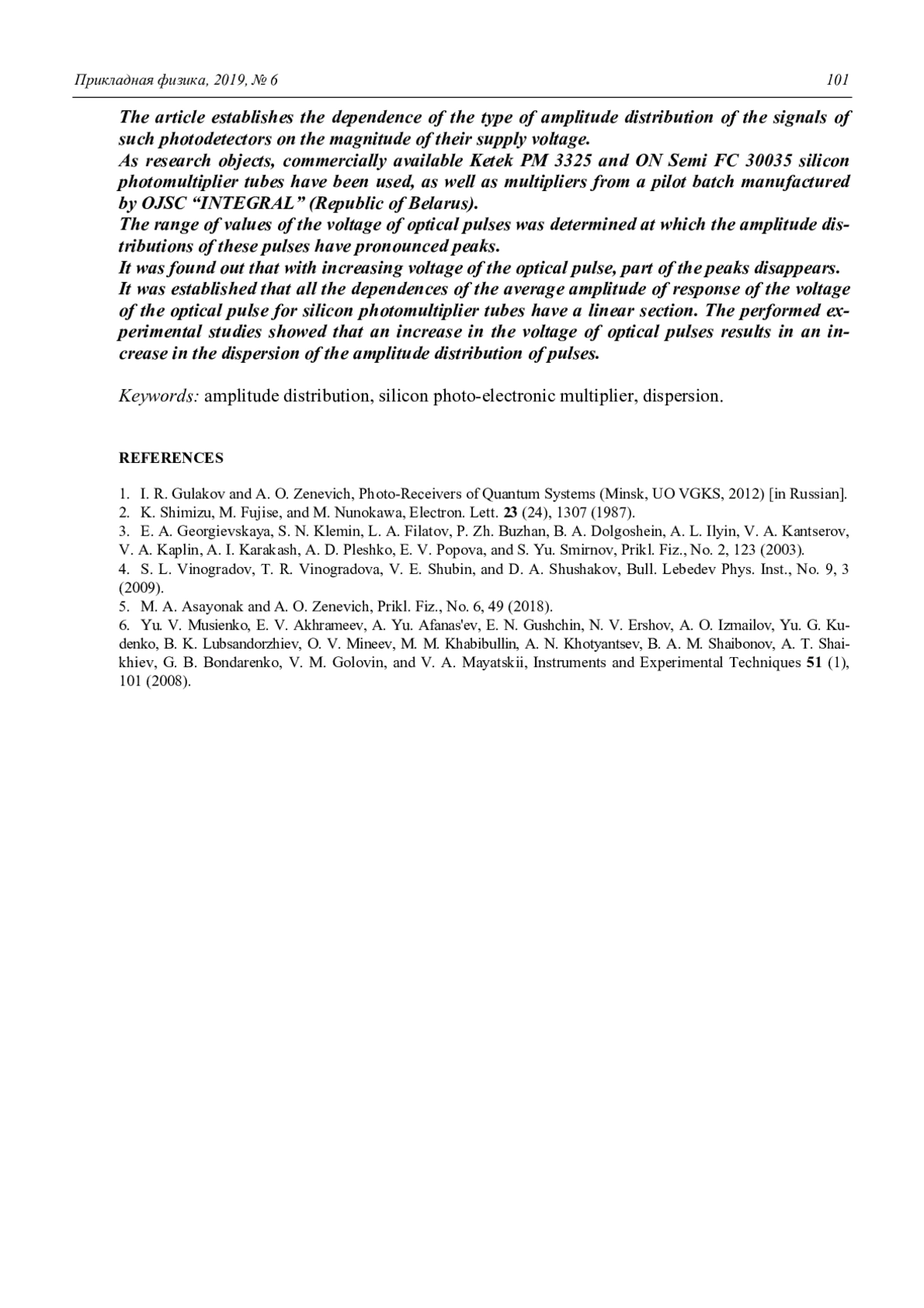 M. A. Asayonak, A. O. Zenevich, and E. V. Novikov Study of the amplitude characteristics of silicon photo-electronic multipliers 96