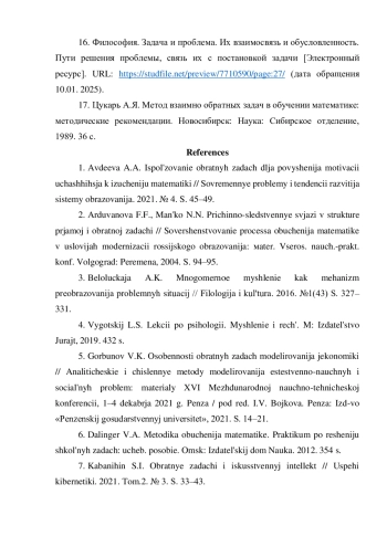 17. Цукарь А.Я. Метод взаимно обратных задач в обучении математике: методические рекомендации. Новосибирск: Наука: Сибирское отделение, 1989. 36 с.