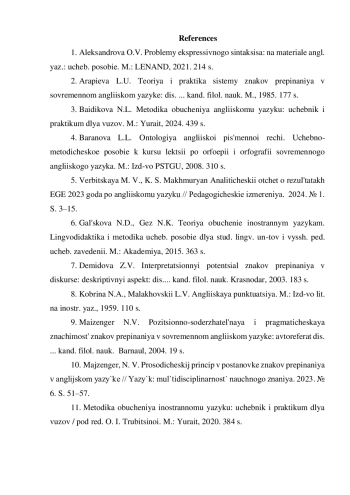 1. Александрова О.В. Проблемы экспрессивного синтаксиса: на материале англ. яз.: учеб. пособие. М.: ЛЕНАНД, 2021. 214 с.