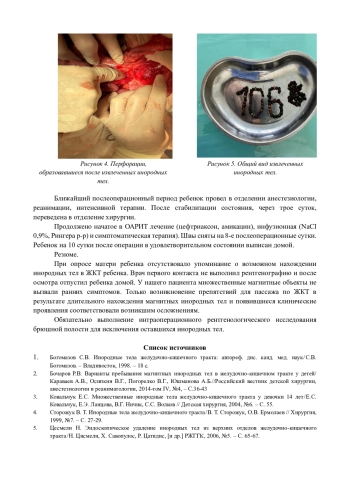 2. Бочаров Р.В. Варианты пребывания магнитных инородных тел в желудочно-кишечном тракте у детей/ Караваев А.В., Осипкин В.Г., Погорелко В.Г., Юшманова А.Б.//Российский вестник детской хирургии, анестезиологии и реаниматологии, 2014-том IV, №4, - С.36-43. EDN: TJCCOD