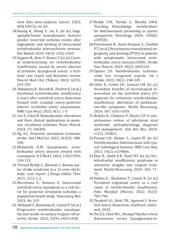 33. Eley N., Smith E.R., Patel N.V. [et al.] Vertebrobasilar insufficiency syndrome in extension: insights into surgical treatment. World Neurosurg. 2024; 183: 71-75.