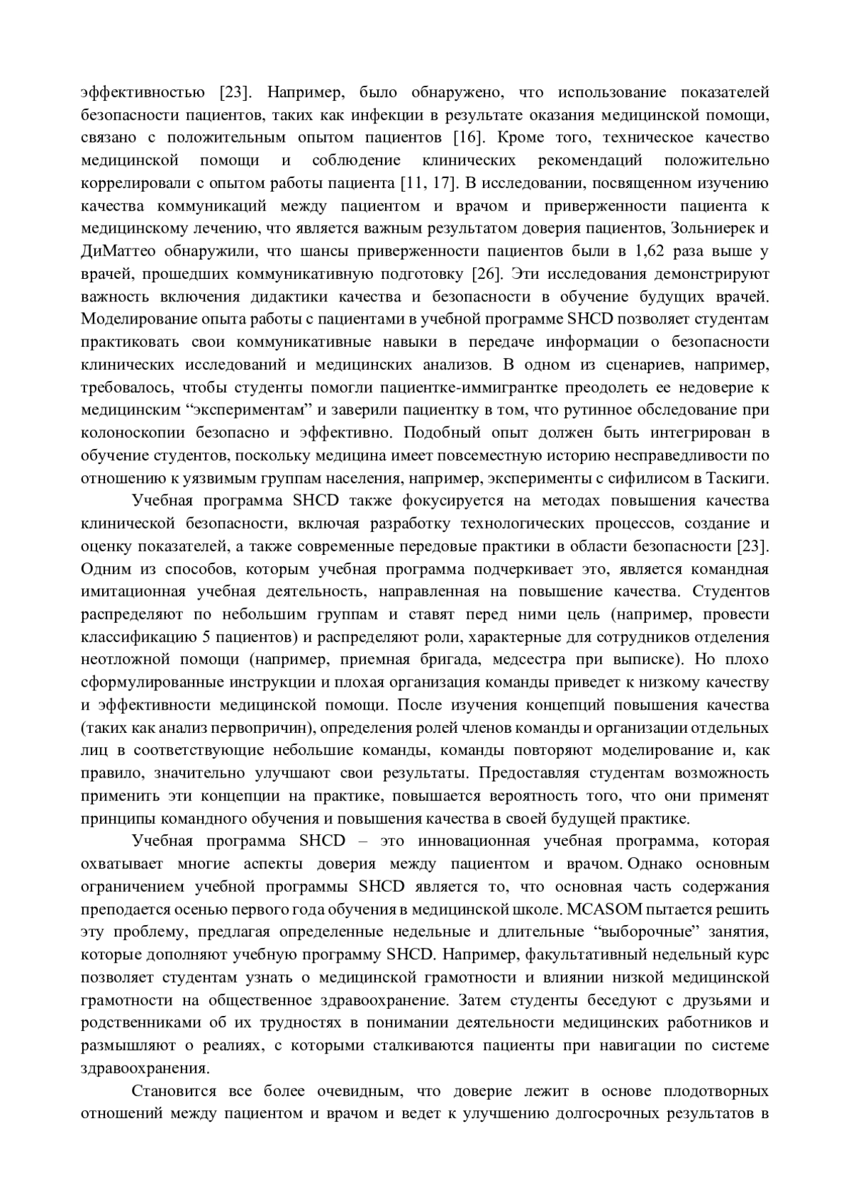 В статье рассмотрены методы укрепления доверия между пациентом и врачом, которые применяются в системе здравоохранения США. Общественное доверие к врачам снизилось за последние 50 лет. Будущим врачам необходимо налаживать доверительные отношения с пациентами. В 2015 году в рамках инициативы Американской медицинской ассоциации “Стимулирующие изменения в медицинском образовании” Медицинская школа клиники Майо Аликс внедрила учебную программу “Наука оказания медицинской помощи” (Science of Health Care Delivery - SHCD) - 4-летнюю учебную программу, в которой особое внимание уделяется междисциплинарному обучению по таким направлениям, как охрана здоровья населения; охрана здоровья человека; высококвалифицированная медицинская помощь, а также политика, экономика и технологии здравоохранения. Учебная программа SHCD потенциально может решить проблемы, которые подорвали доверие пациента к врачу. Учебная программа достигает этой цели посредством дидактических и / или основанных на опыте занятий, нацеленных на формирование умений совместного принятия решений, защиты интересов пациентов, а также безопасности и качества медицинской помощи. Автор считает, что новые программы медицинского образования, такие как учебная программа SHCD, позволят будущим врачам страны осознать свою роль в восстановлении и укреплении общественного доверия к врачам и системе здравоохранения, в целом.