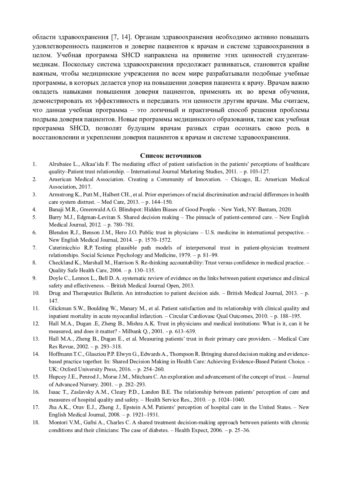 МЕЖИДОВА М. Р. МЕТОДЫ УКРЕПЛЕНИЯ ДОВЕРИЯ МЕЖДУ ПАЦИЕНТОМ И ВРАЧОМ В МЕДИЦИНСКИХ ОБРАЗОВАТЕЛЬНЫХ УЧРЕЖДЕНИЯХ США // ВЕСТНИК МЕДИЦИНСКОГО ИНСТИТУТА. 2024. № 2 (26)