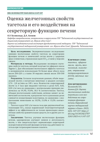 Статья: Оценка желчегонных свойств тагетола и его воздействия на секреторную функцию печени (2025)