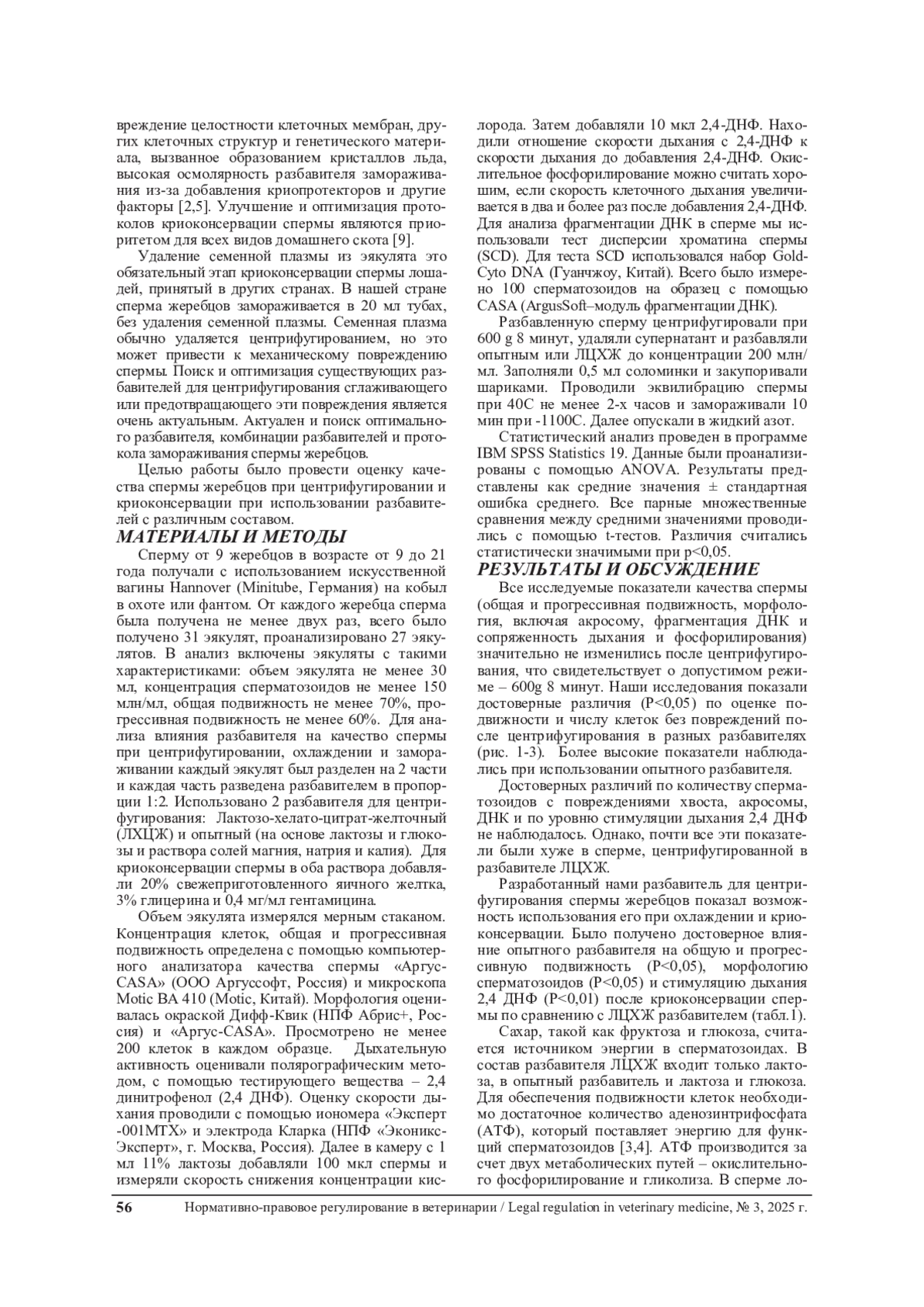 3. Bustani G.S., Baiee F.H. Semen extenders: An evaluative overview of preservative mechanisms of semen and semen extenders. Veterinary World. 2021;14(5):1220-1233. www. DOI: 10.14202/vetworld.2021.1220-1233 EDN: ODFKKE